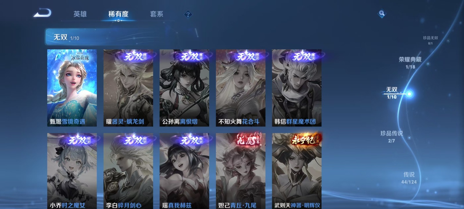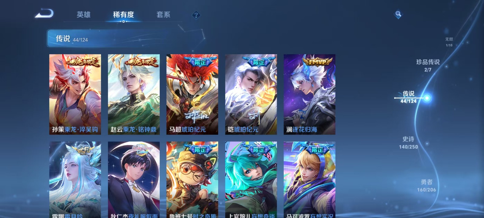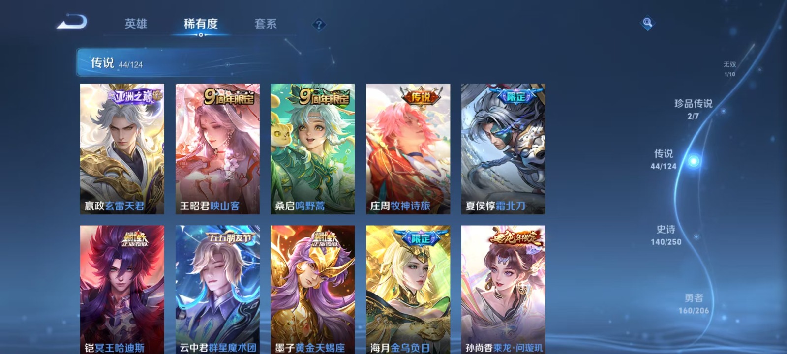 [11893568]V9 1典藏 1无双 2珍品传说 44传说 125英雄 420皮肤 典藏英雄武则天 安全保护中 可修改实名 荣耀水晶:神鉴启示录 无双皮:雪境奇遇-甄姬 珍品传说:江户川柯南,怪盗基德 传说皮:牧神诗旅,金乌负日,琥珀纪元铠,琥珀纪元马超,乘龙·问璇玑(孙尚香年限),乘龙·铭钟鼎(赵云年限),乘龙·淬吴钩(孙策年限),黄金天蝎座,云中君群星魔术团,玄雷天君,铠冥王哈迪斯,李逍遥,遇见胡旋,游龙清影(小青龙),黄金射手座,零号·赤焰,海洋之心,地狱之眼,一念神魔,淬星耀世,久胜战神,炽阳神光,音你心动-小乔,音你心动-周瑜,胖达荣荣,飞鸢探春,绛天战甲(鸡嘴战神),超时空战士-狄仁杰,挚爱之约,妄想实况,妄想奇谈,鲁班七号-时之奇旅,夜礼服假面,霜月吟,澜逐花归海 珍宝阁皮:妄想食味,优雅恋人,女武神 限定皮:逐霄战戟,映山客,陌上桑,鸣野蒿,夏侯惇霜北刀,至尊宝,凤求凰(白切鸡),凤凰于飞,异界灵契(白毛香),时之彼端,白鹤梁神女,魔法小厨娘,白晶晶,时雨天司(水龙头),至美·乘鲤谣,遇见飞天,高山流水,五谷丰年,梁祝,御风骁将(吕布年限),岱宗(典韦年限),天狼溯光者,奔雷神使(牛魔年限),祈雪灵祝(雪兔子),李小龙,逐梦之影,霸王别姬-虞姬,默契交锋-兰陵王,默契交锋-花木兰,孙行者,大圣娶亲,乒乒小将,女儿国国王,唐三藏,山海·玄木吟(马可年限) 史诗皮:星界特工,谪仙醉月,百相守梦-百里守约,星界战将,茶境仙,芈月浮光幕影,炽弈燎原,破空之剑,海诺心动手记,决胜骁骑,上官婉儿群星魔术团,奇遇星旅,蔬乡物语(鲁班七号),战舞者,乘龙·聚宝船(安琪拉年限),乘龙·忆丹青(大乔年限),琥珀纪元伽罗,埋骨钱,蒙犽顽岩魄,东方月初,怒海争锋,紫霞仙子,苍穹之光,电玩小子(小书包),黄金分割率,特工魅影,千年之狐,永昼,电玩·爆裂旋风,暗夜猫娘,浮梦罗烟,龙骑士(小龙虾),百相守梦(刘备),冰冠公主,魅语,无限星赏官,晚萤,偶像歌手,蒙恬荣光圣徽,高渐离燃音魔法,百解令(蒙犽),雪夜绮愿(周瑜),江河有灵,匿光侦查者,末日机甲-吕布,猫狗日记-孙策,猫狗日记-大乔,乱世虎臣,节奏热浪,修罗,女仆咖啡,摇滚巨星,水果甜心,绅士熊喵,天才门将,星夜王子,心灵骇客,时之奇旅-安琪拉,功夫厨神,德古拉伯爵,暗隐猎兽者,幽灵船长,鬼剑武藏,暗渊魔法,心灵战警,乐园奇幻夜,