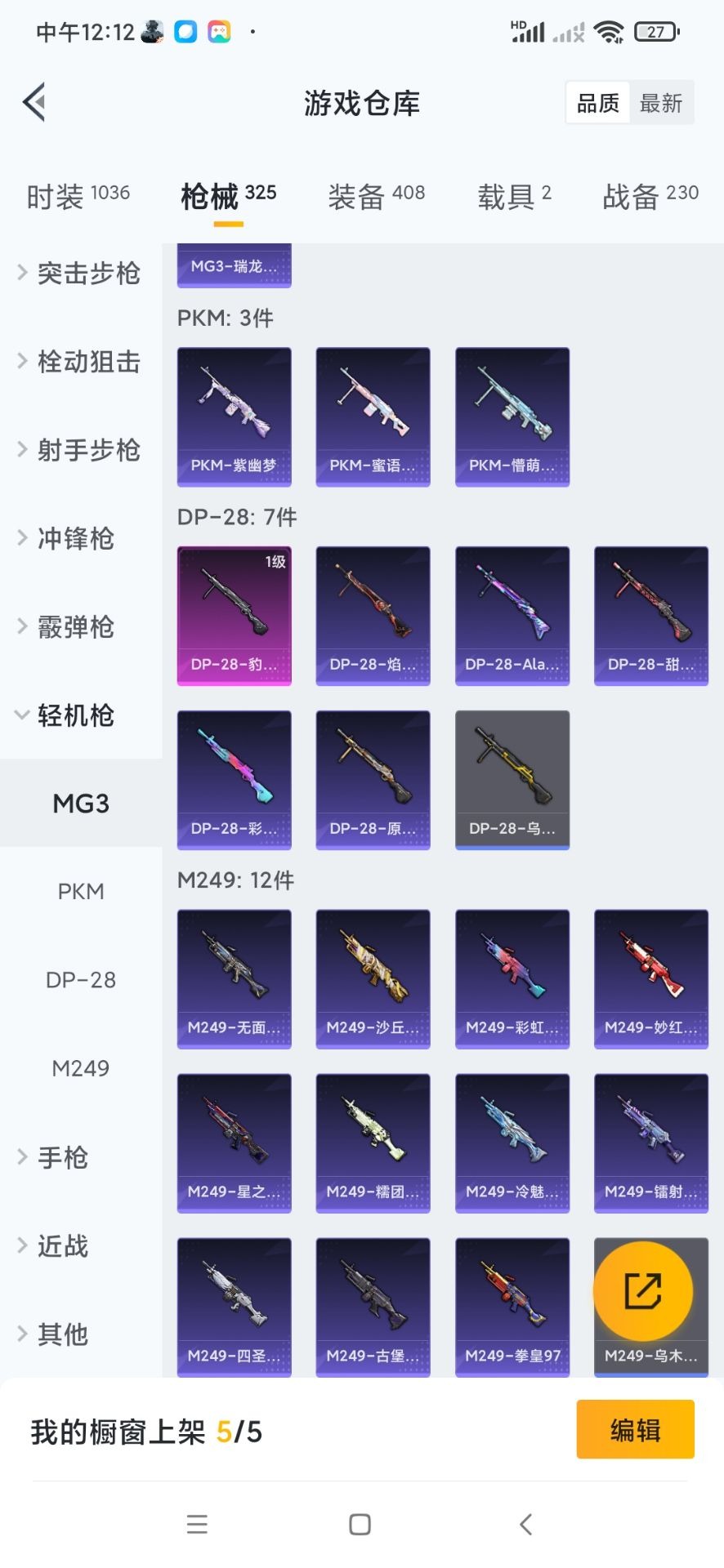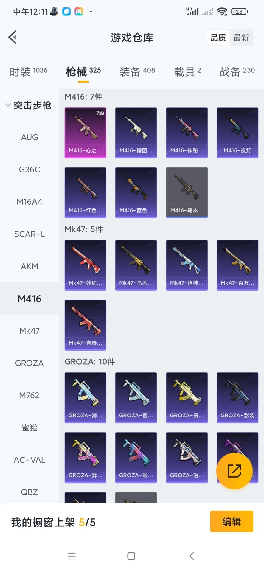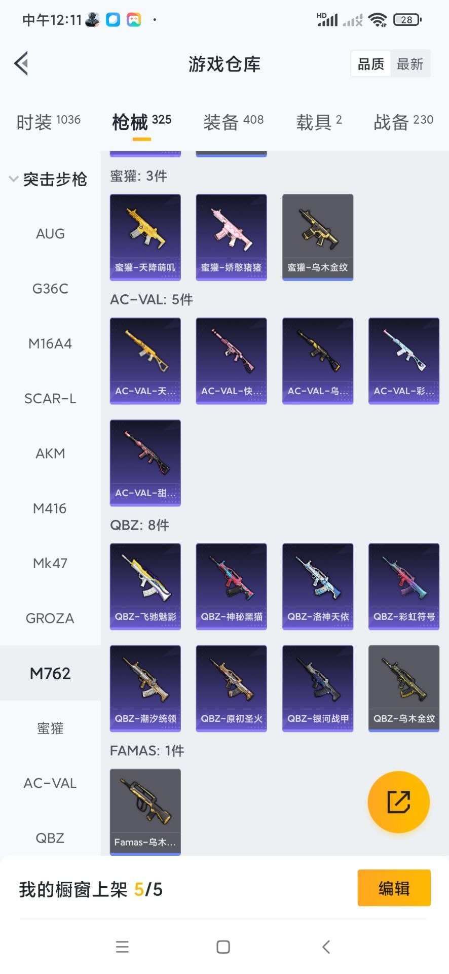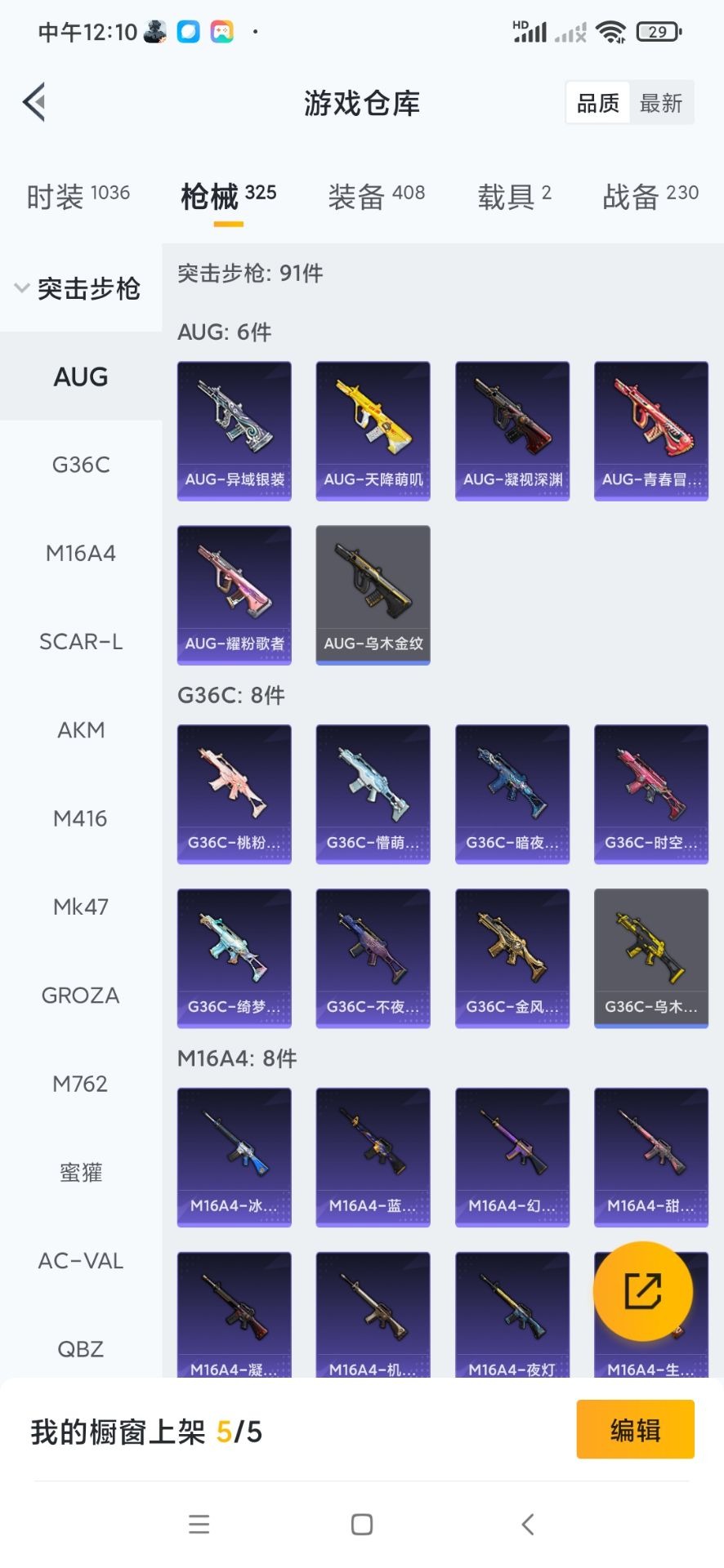 SCAR-L-机甲封神,M416-心之恋语,M762-激战未来,Kar98K-巳巳如意,Mk14-闲梦青缨,MG3-洛神天依
