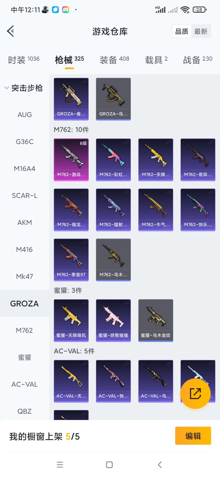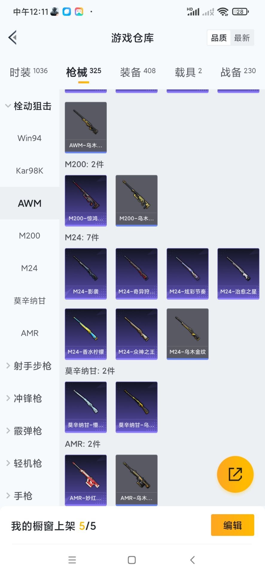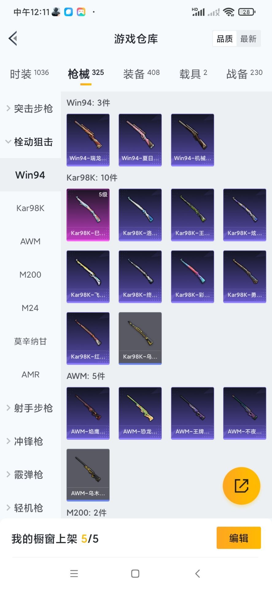 AKM-奇异狩猎者,M762-奇异狩猎者,M762-瑞龙福将,Kar98K-终极赛罗,M24-奇异狩猎者,M24-香水柠檬,S686-奇异狩猎者,M249-古堡领主