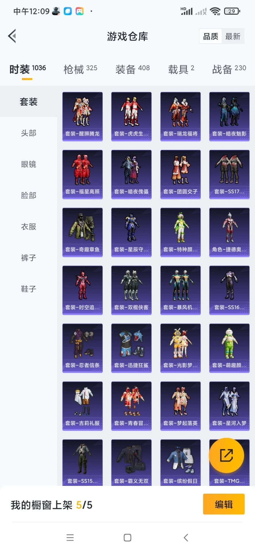 套装-鹰眼刺客,套装-奇异狩猎者,套装-迅捷狂鲨,套装-深海小丑鱼,套装-幻影战神,套装-万圣娃娃,套装-浪漫波比,奇迹天团套装,套装-潮萌小黄鸭,套装-神秘黑猫,套装-软萌银虎,套装-王牌四分卫,角色-洛天依,套装-星之彼岸,套装-炙焰赤龙,套装-银龙傲海,套装-蓝莓炮弹,套装-赤焰黑爵,角色-烟云彩露,套装-第五大道