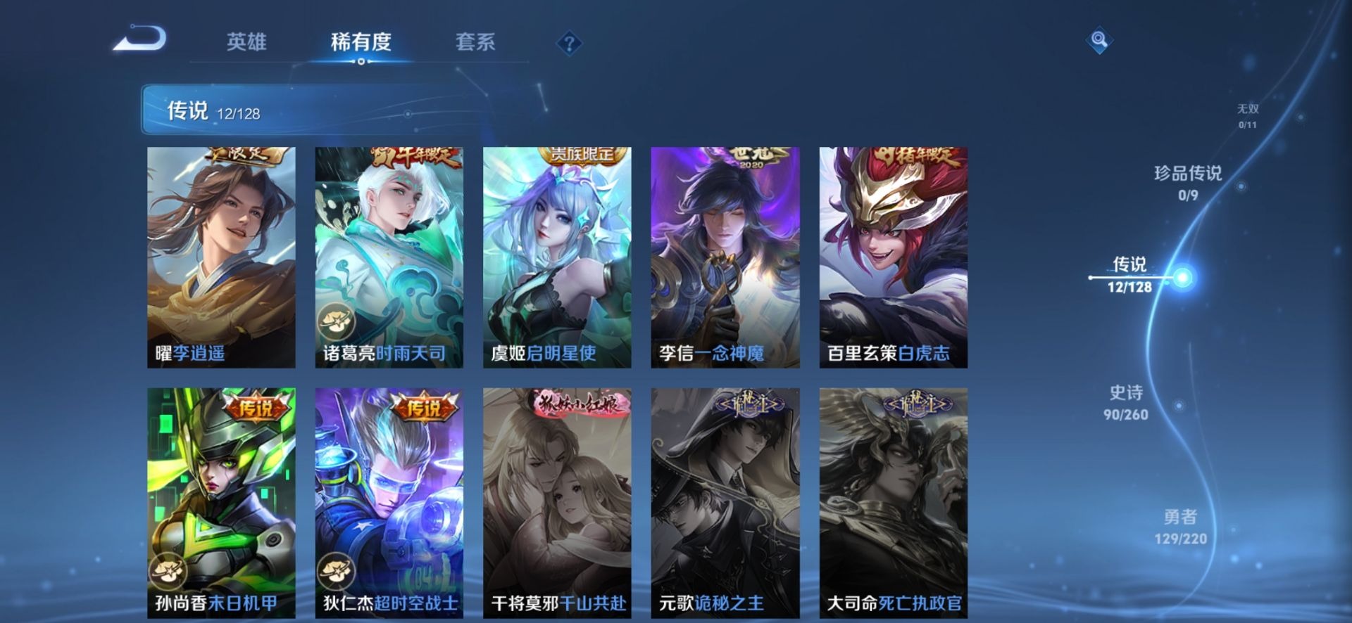 - [11881111]V6 1传说 119英雄 98皮肤 可修改实名 限定皮:鸣野蒿,至尊宝,遇见飞天,五谷丰年,冰锋战神,逐梦之影 史诗皮:白龙吟,千年之狐,末日机甲-吕布,水果甜心,绅士熊喵,德古拉伯爵,水晶猎龙者,鹰眼统帅,魅力维加斯