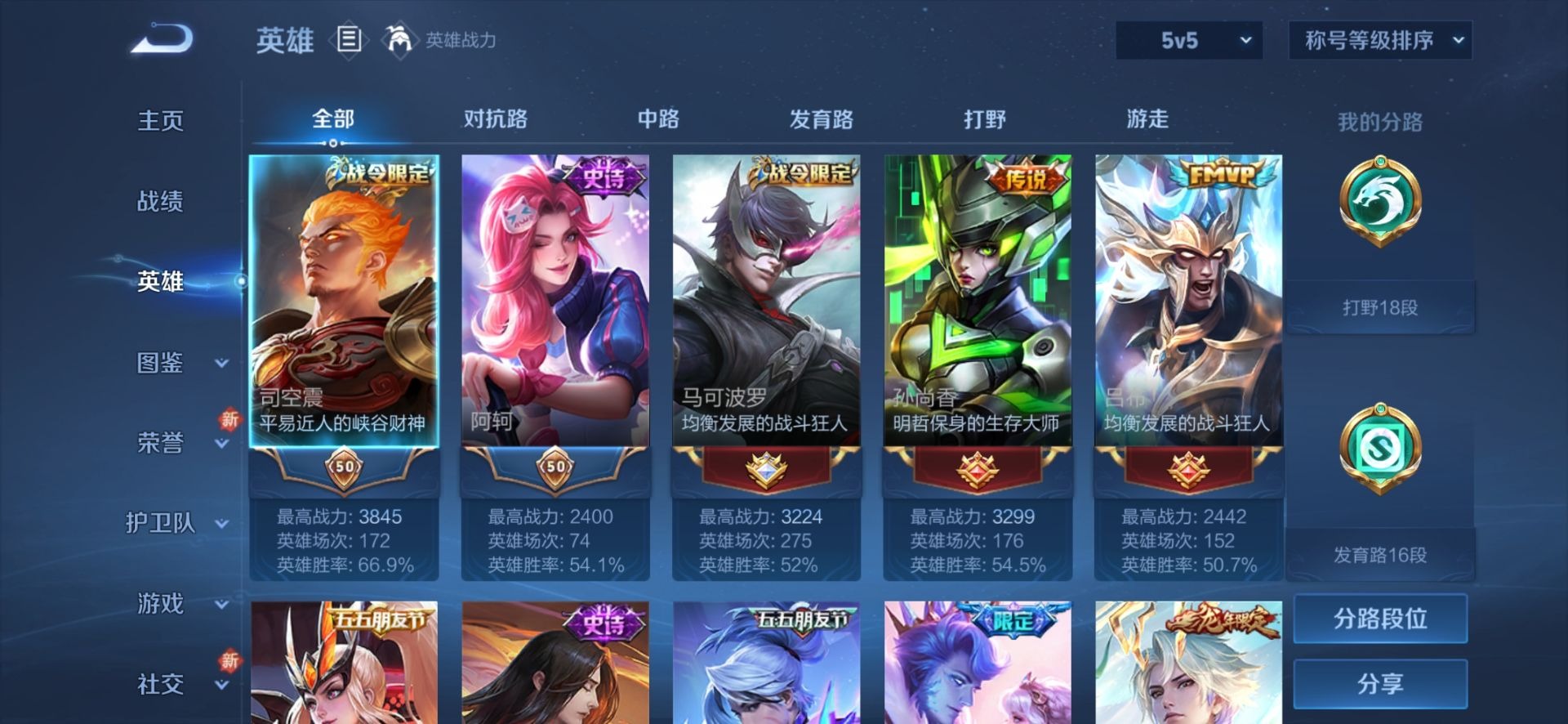 - [11845547]V6 5传说 124英雄 204皮肤 可修改实名 优质装备:云鹰飞将(小将军),澜逐花归海 传说皮:幻光神枪 珍宝阁皮:妄想食味,万物之道,玩趣恶龙 限定皮:愿照·九州拓(澜年限),逐霄战戟,鸣野蒿,五谷丰年,游园惊梦,李小龙,朱雀志(守约年限) 史诗皮:器灵·浮梦炉,星界战将,谪仙醉月,龙之律动,破空之剑,百相守梦-黄忠,特工魅影,江河有灵,百解令(蒙犽),蒙恬荣光圣徽,偶像歌手,电玩·爆裂旋风,末日机甲-吕布,猫狗日记-孙策,猫狗日记-大乔,乱世虎臣,节奏热浪,修罗,女仆咖啡,摇滚巨星,水果甜心,绅士熊喵,星夜王子,功夫厨神,德古拉伯爵,暗隐猎兽者,幽灵船长,鬼剑武藏,心灵战警,舞动绿茵,逐浪之夏,水晶猎龙者,金属风暴,鹰眼统帅,魅力维加斯,黎明之约,无心,未来纪元-赵云