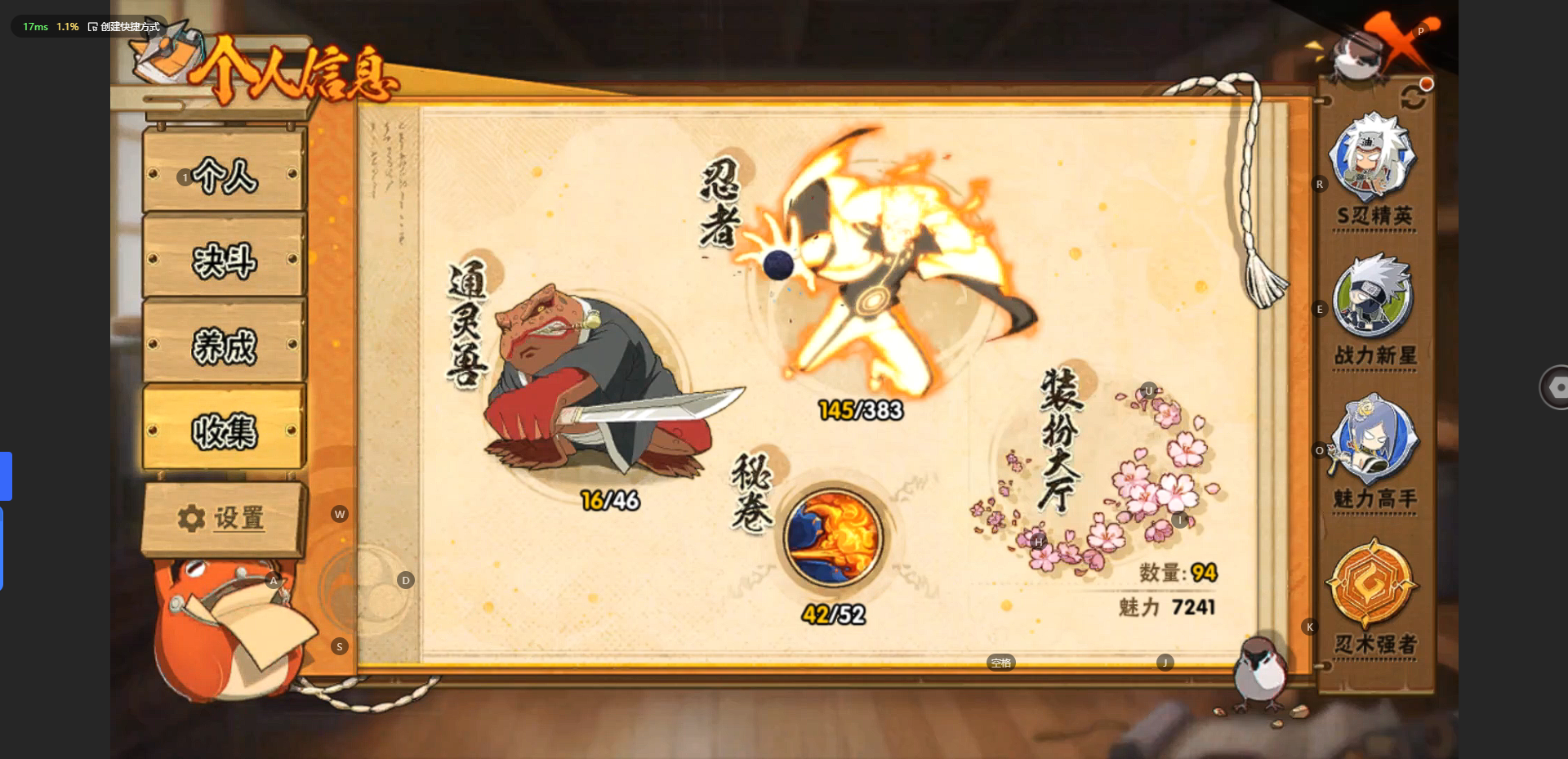 - [11218814],S忍数 19 A忍数 45 时装数 13 战力值(万) 7596853 S级忍者(19) 宇智波鼬「秽土转生」,宇智波斑 「木叶创立」,佩恩「天道」,大蛇丸,波风水门,宇智波鼬 「须佐能乎」,迈特凯「死门」,自来也 「舞之豪杰」,宇智波斑「白面具」,漩涡鸣人 「九喇嘛连结」,春野樱 「忍界大战」,神秘面具男 「红夜之刃」,宇智波佐助「永恒万花筒」,大筒木桃式,艾「忍界大战」,宇智波止水「须佐能乎」,旗木卡卡西「须佐能乎」,自来也 「传说中的三忍」,漩涡鸣人 「暴怒·第六尾」 三星S(19) 宇智波鼬「秽土转生」,宇智波斑 「木叶创立」,佩恩「天道」,大蛇丸,波风水门,宇智波鼬 「须佐能乎」,迈特凯「死门」,自来也「舞之豪杰」,宇智波斑「白面具」,漩涡鸣人 「九喇嘛连结」,春野樱 「忍界大战」,神秘面具男 「红夜之刃」,宇智波佐助「永恒万花筒」,大筒木桃式,艾「忍界大战」,宇智波止水「须佐能乎」,旗木卡卡西「须佐能乎」,自来也 「传说中的三忍」,漩涡鸣人 「暴怒·第六尾」 五星A(3) 干柿鬼鲛,猿飞阿斯玛,迈特凯 三星A(1) 我爱罗「疾风传」 二星A(41) 旗木卡卡西「元气夏日」