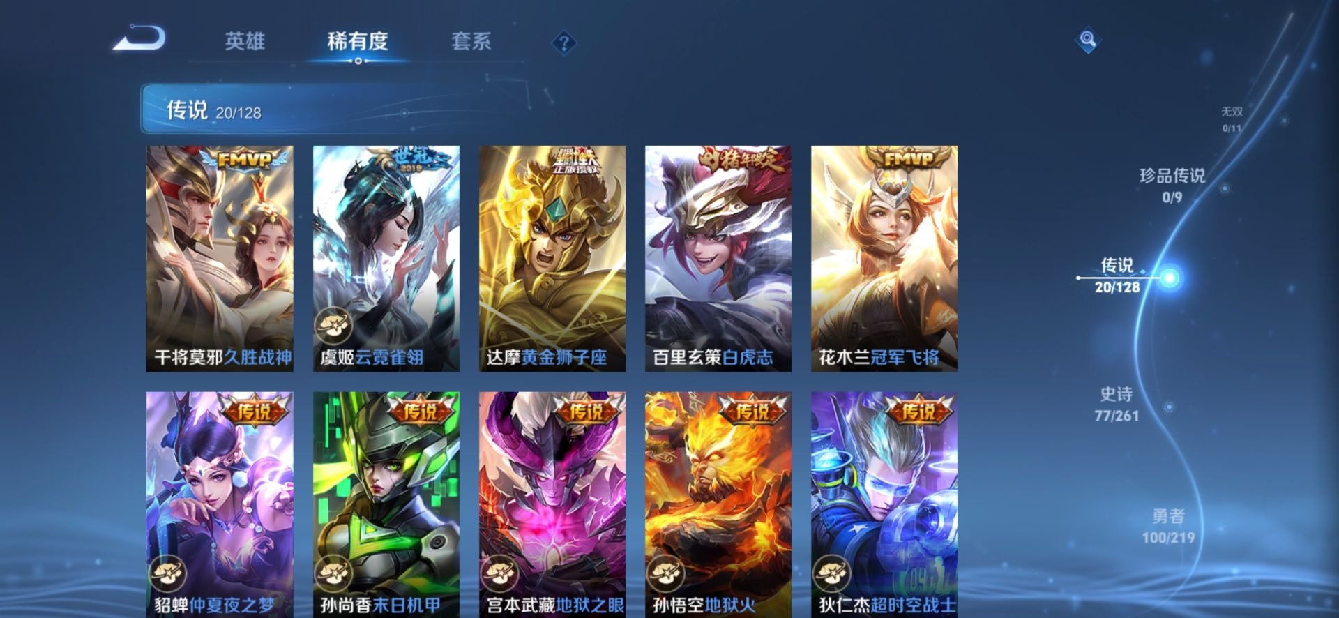 - [11526356]关羽典藏,武则天,小将军,李逍遥,电光耗子,仲夏夜,武陵仙君,玉兔公主,白鹤梁神女,紫霞,至尊宝,马可年限,-可二次-123英雄-221皮肤-1典藏-21传说-71史诗 炽阳神光-镜 山海·苍雷引-曜 白虎志-百里玄策 山海·炽霜斩-李信 武陵仙君-诸葛亮 山海·玄木吟-马可波罗 冰冠公主-雅典娜 天狼绘梦者-上官婉儿 神威-马超 至尊宝-孙悟空 街头霸王-韩信