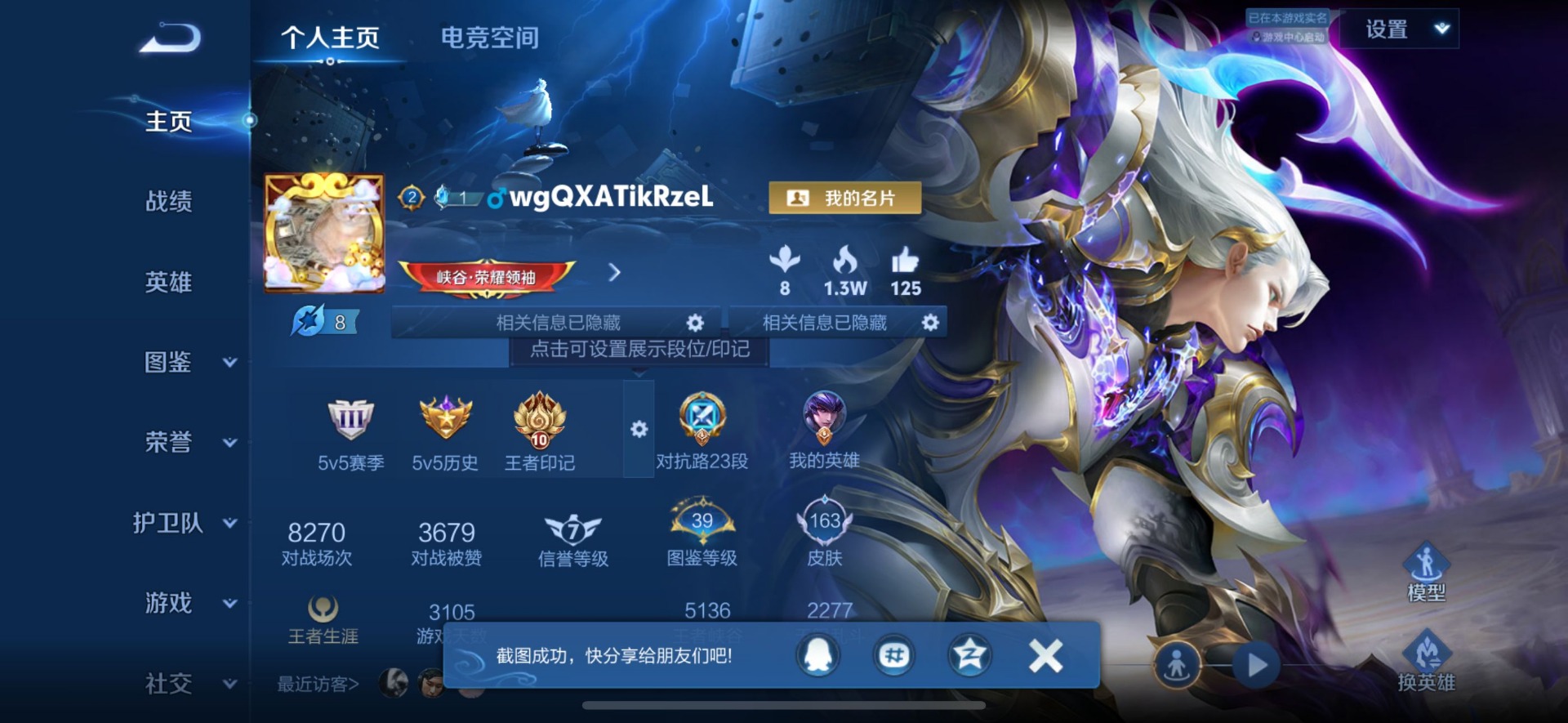 - PX_2073002-贵族等级: V4 英雄数: 50 皮肤数: 26 传说皮: 无双飞将,霜月吟 限定皮: 鸣野蒿