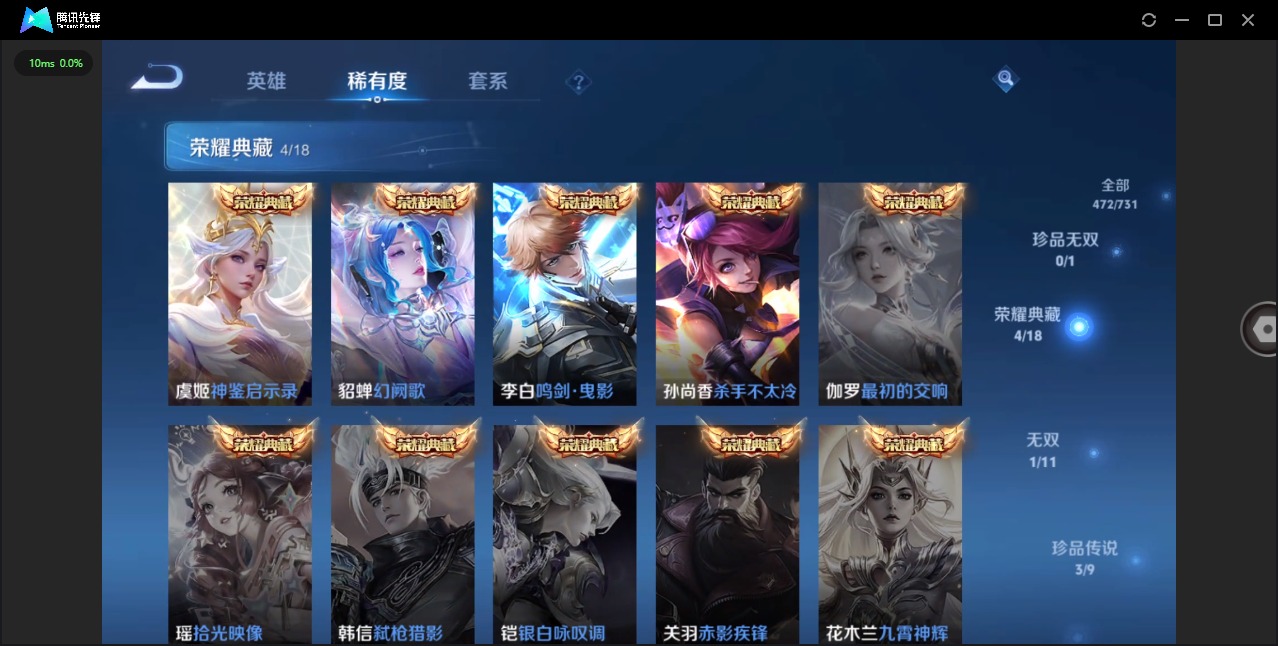 [11899562]V10 4典藏 1无双 3珍品传说 69传说 125英雄 472皮肤 可修改实名 优质装备:杀手不太冷,鸣剑·曳影,幻阙歌(貂蝉典藏),神鉴启示录,雪境奇遇-甄姬,怪盗基德,黑崎一护,黄金狮子座,黄金射手座,云鹰飞将(小将军),绛天战甲(鸡嘴战神),一念神魔,云霓雀翎,末日机甲-孙尚香(绿蚂蚱),零号·赤焰,地狱之眼,胖达荣荣,李逍遥,时之恋人-刘备(电焊工),游龙清影(小青龙),淬星耀世,超时空战士-狄仁杰,末日机甲-孙策,挚爱之约,碎云,神器·狴犴令,山海·琳琅生(小乔年限),画中仙,浮生妄,记忆之芯(机甲兔),百相守梦(张飞),妄想实况,遇见神鼓,鲁班七号-时之奇旅,夜礼服假面,霜月吟,澜逐花归海,艾琳觅芳踪,金乌负日,朵莉亚心动手记,牧神诗旅,玄雷天君,诡秘之主,涂山容容 珍品传说:时之奇旅-孙策 传说皮:乘龙·问璇玑(孙尚香年限),乘龙·铭钟鼎(赵云年限),乘龙·淬吴钩(孙策年限),貂蝉曦玄引,吕布曦玄引,典韦战鼓燎原,死亡执政官,九山相柳,云诺千山,续相思,星之鸣奏,祥瑞亨通,幻光神枪 珍宝阁皮:妄想食味,蔷薇恋人,女武神 限定皮:愿照·九州拓(澜年限),愿照·福禄聚(蔡文姬年限),愿照·岁时盈(虞姬年限),愿照·山河定(司空震年限),愿照·众生和(妲己年限),愿照·千秋盛(女娲年限),逐霄战戟,陌上桑,鸣野蒿,至尊宝,白虎志(电光耗子),太华(伽罗年限),武陵仙君(小桃花),异界灵契(白毛香),傲雪梅枪,寅虎·展翼(孙膑年限),绯月行,白晶晶,时雨天司(水龙头),神威(电光马子),山海·碧波行(瑶年限),至美·乘鲤谣,至美·化雀舞,影龙天霄,高山流水,五谷丰年,青龙志(铠年限),冰锋战神,游园惊梦,梁祝,御风骁将(吕布年限),逐梦之翼,烈魂,祈雪灵祝(雪兔子),天狼绘梦者,李小龙,真爱至上,猪悟能,青春决赛季,寅虎·瑞焰(虎皮蛋子),寅虎·赤拳(老虎年限),玉兔公主,深海之息(深海大菠萝) 史诗皮:赞萌露比,鸭鸭历险记-刘禅,苍鳞隐世,器灵·浮梦炉,糖绘人间,狼魂孤将,绮世丹青,瑰影绮梦,化蝶舞,灵蛊蚀心,星界战将,谪仙醉月,龙之律动,雪豹·霜爪,藏狐·褐绒,布丁狗之誓,百相守梦-周瑜,茶境仙,幻珠鲛人,怒海争锋,炽弈燎原,撼地雄心,破空之剑,埋骨钱,芈月浮光幕影,海诺心动手记,琥珀纪元伽罗,蔬乡物语(鲁班七号),超元猎域,乘龙·聚宝船(安琪拉年限