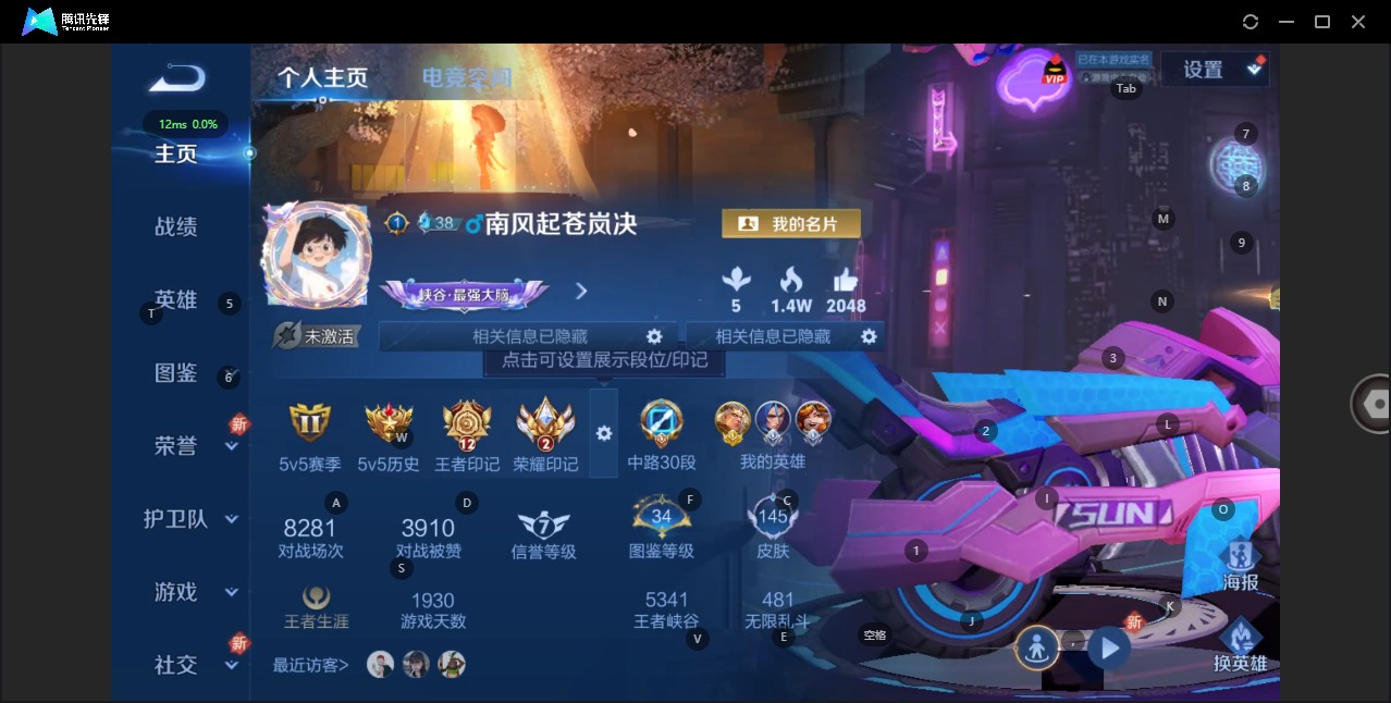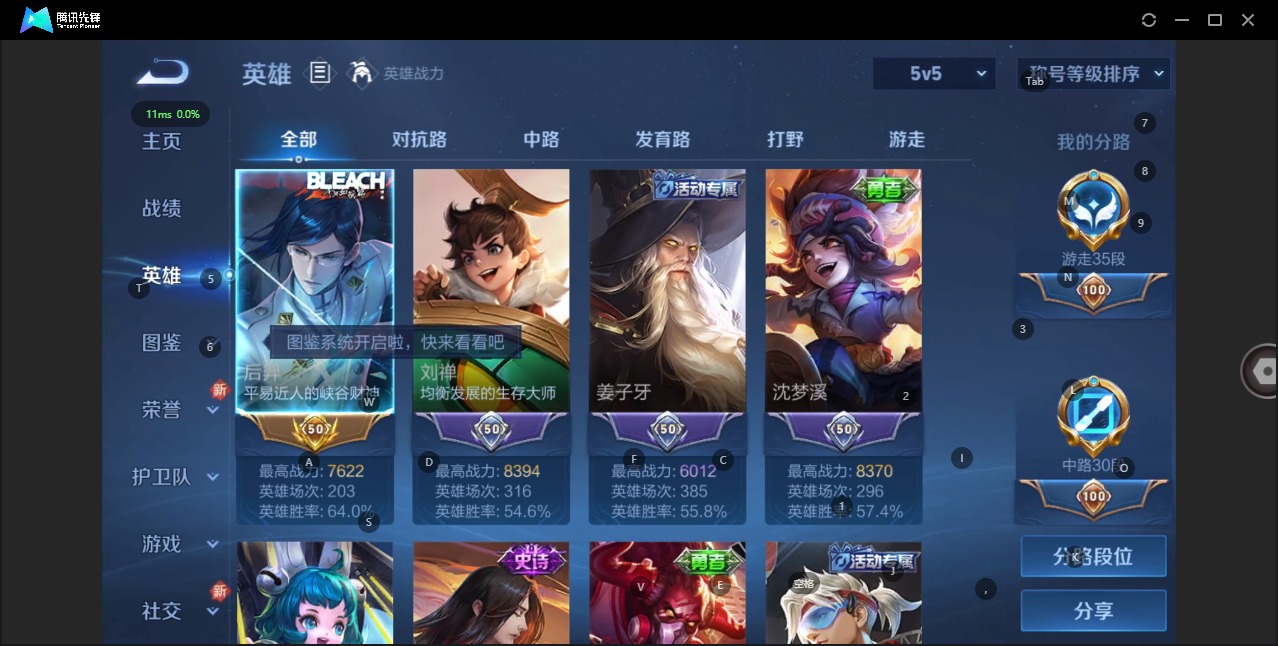 - PX_2084348-贵族等级: V5 英雄数: 124 皮肤数: 129 珍品传说: 兔狲·蓬尾 传说皮: 澜逐花归海,云诺千山 限定皮: 五谷丰年,鸣野蒿