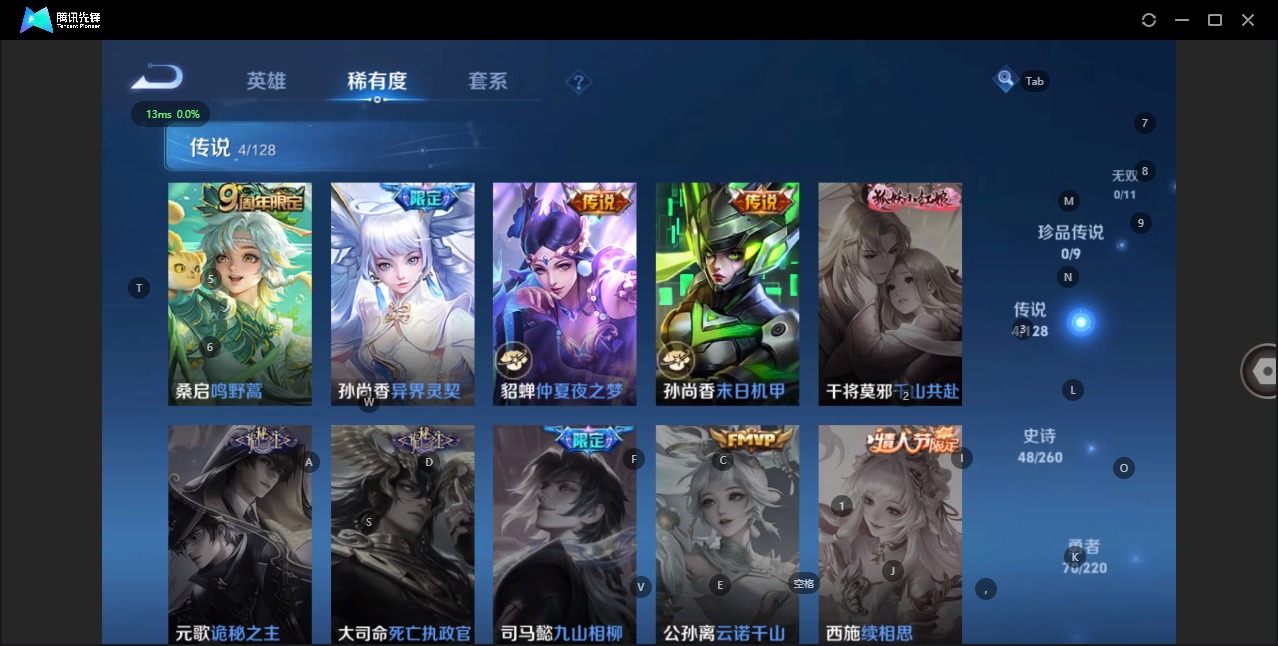- [11785624]V10 6典藏 3无双 2珍品传说 54传说 126英雄 463皮肤 典藏英雄武则天 可修改实名 优质装备:倪克斯神谕(宇宙婆娘),无限飓风号(高达),银白咏叹调(倪克斯侍卫),幻阙歌(貂蝉典藏),弑枪猎影(韩信典藏),真我赫兹(瑶)(瑶无双),青丘·九尾(妲己无双),神鉴启示录,小乔时之魔女(小乔无双),酷洛米之心,大耳狗之梦,黄金射手座,冠军飞将,云鹰飞将(小将军),绛天战甲(鸡嘴战神),黄金白羊座,猫影幻舞,久胜战神,炽阳神光,一念神魔,云霓雀翎,末日机甲-孙尚香(绿蚂蚱),地狱火,仲夏夜之梦(大飞蛾),音你心动-小乔,零号·赤焰,地狱之眼,音你心动-周瑜,胖达荣荣,李逍遥,时之恋人-刘备(电焊工),游龙清影(小青龙),花朝如约(花篮子),燃星之曲,浮生妄,青丘·九尾,百相守梦(张飞),追逃游戏(亚瑟),追逃游戏(安琪拉),电玩·雷克斯,鹤羽星尊,灼幽烈阳,妄想实况,妄想奇谈,鹤归松栖(云缨),遇见神鼓,鲁班七号-时之奇旅,大乔-时之奇旅,永恒水手月亮,夜礼服假面,艾琳觅芳踪 珍宝阁皮:胡桃夹子,蔷薇恋人 限定皮:愿照·福禄聚(蔡文姬年限),鸣野蒿,至尊宝,白虎志(电光耗子),凤求凰(白切鸡),凤凰于飞,太华(伽罗年限),武陵仙君(小桃花),时之彼端,魔法小厨娘,白晶晶,时雨天司(水龙头),神威(电光马子),飞衡(韩信年限),玄嵩(庄周年限),瑞麟志(木兰年限),至美·乘鲤谣,至美·化雀舞,影龙天霄,遇见飞天,五谷丰年,青龙志(铠年限),冰锋战神,幽恒(沐浴露),武圣,天狼运算者,游园惊梦,梁祝,御风骁将(吕布年限),天狼狩猎者,龙胆,逐梦之星,烈魂,岱宗(典韦年限),天狼溯光者,虎魄,逐梦之音,奔雷神使(牛魔年限),祈雪灵祝(雪兔子),天狼绘梦者,李小龙,逐梦之光,玄武志(苏烈年限),朱雀志(守约年限),如梦令-嫦娥,如梦令-后羿,奇迹圣诞,大圣娶亲,天魔缭乱,冰霜恋舞曲,云端筑梦师,乒乒小将,蜜橘之夏,神奇女侠,时之祈愿-瑶(瑶传限),深海之息(深海大菠萝),神器·万象笔 史诗皮:鸭鸭历险记-刘禅,化蝶舞,灵蛊蚀心,星界战将,龙之律动,藏狐·褐绒,石田雨龙,蔬乡物语(鲁班七号),遇见神鹿,紫霞仙子,苍穹之光,电玩小子(小书包),白龙吟,黄金分割率,特工魅影,千年之狐,江河有灵,匿光侦查者,鹤归松栖(赵怀真),雪夜绮愿(周瑜),浮梦罗烟,魅语,百解令