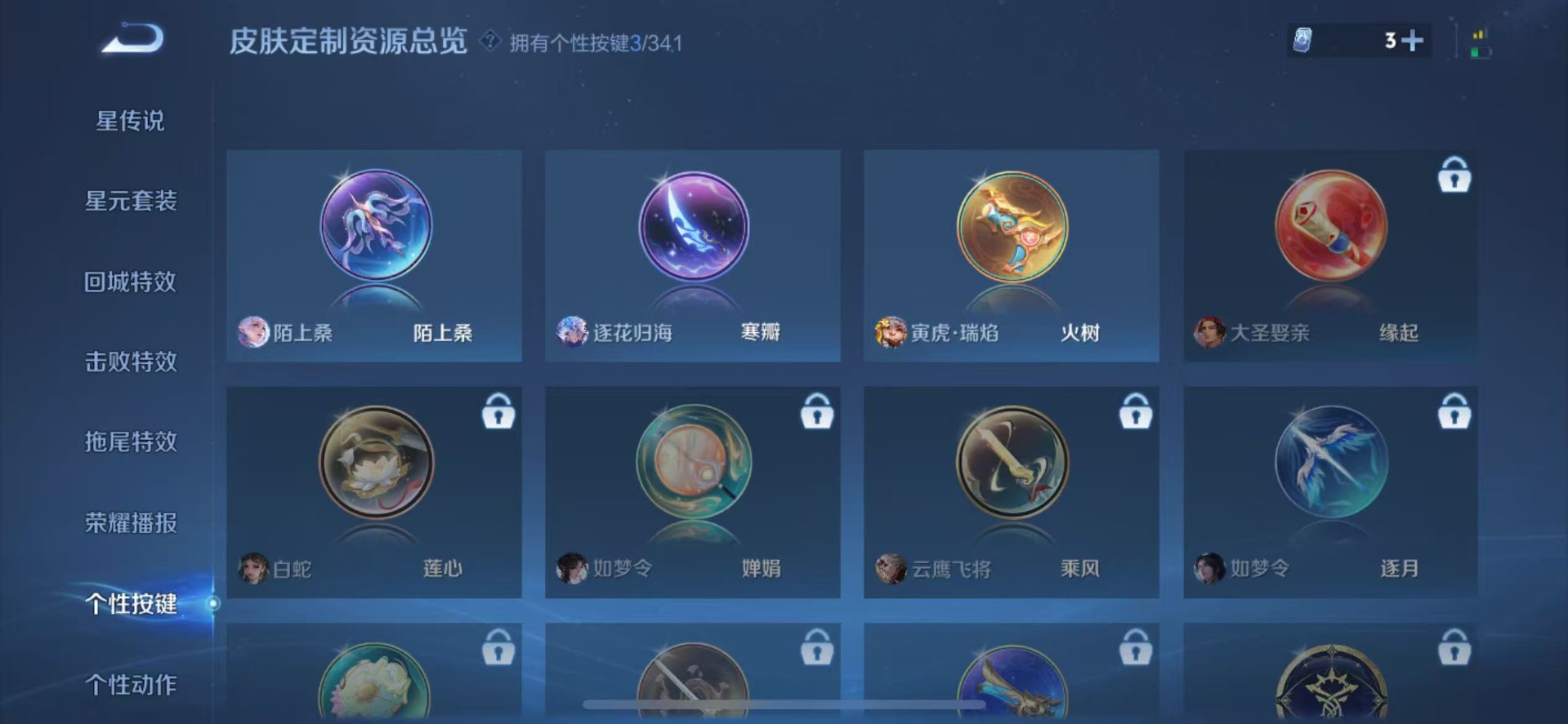 黄忠烈魂,鲁班七号乒乒小将,鲁班七号寅虎·瑞焰,吕布御风骁将,公孙离玉兔公主,裴擒虎李小龙,上官婉儿梁祝,马可波罗逐梦之星,马可波罗山海·玄木吟,艾琳陌上桑,猪八戒猪悟能,孙悟空至尊宝,韩信逐梦之影,澜愿照·九州拓,关羽冰锋战神