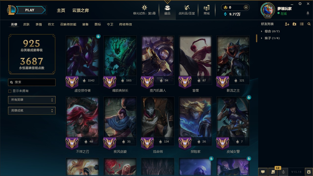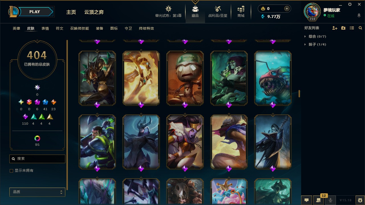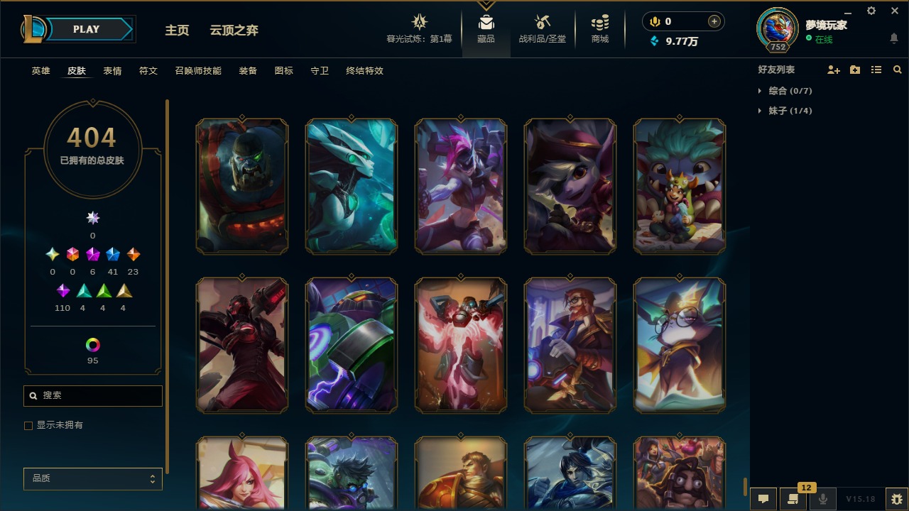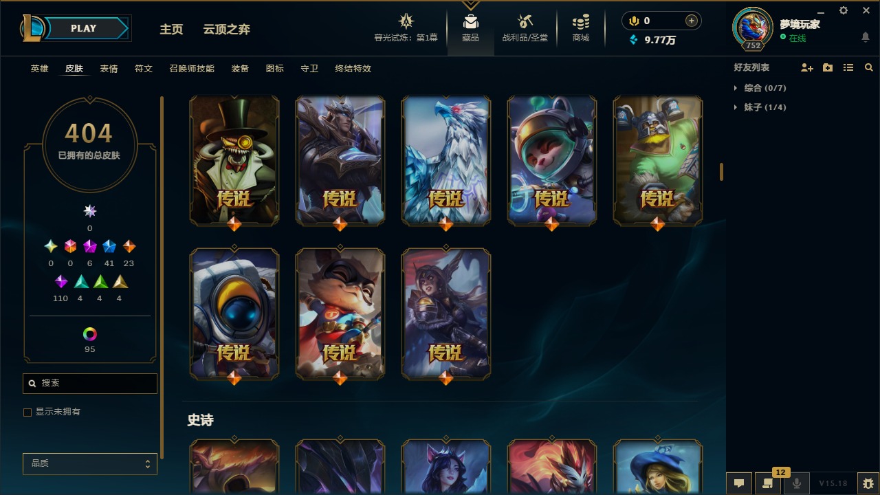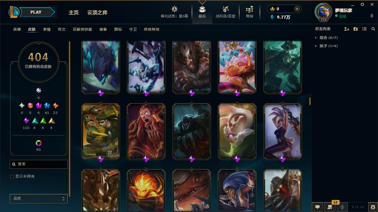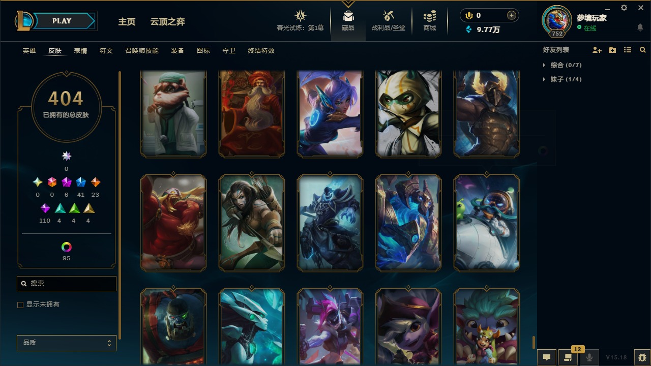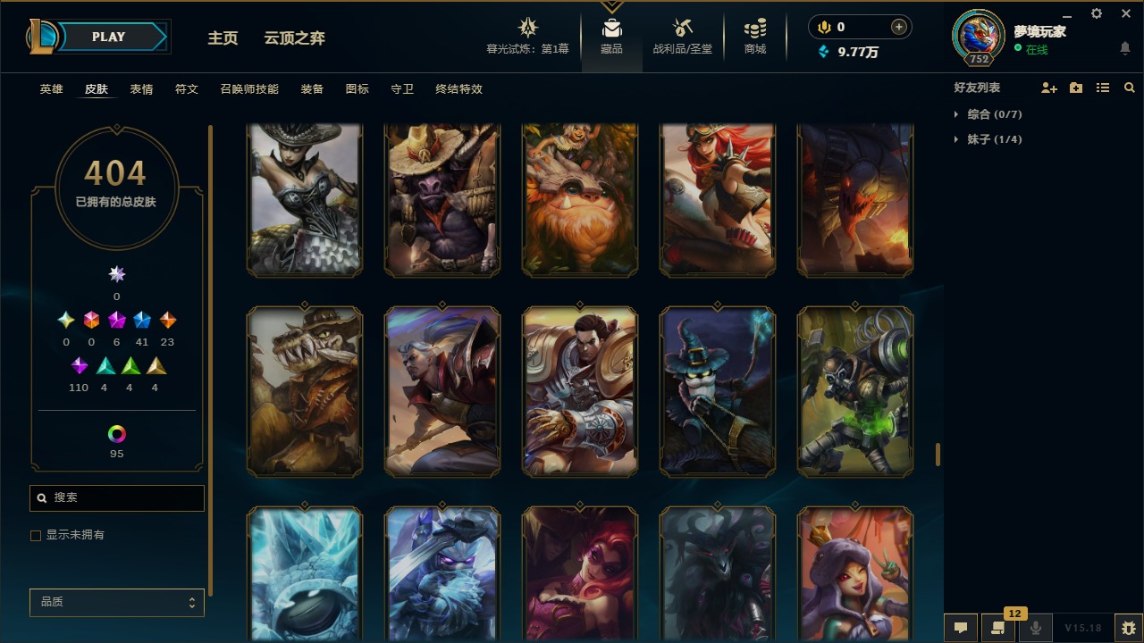 [11900086]6神话 41限定 23传说 110史诗 404皮肤 111炫彩 171英雄 可二次 可修改实名 优质装备:黎明使者 卡尔玛,源代码 乐芙兰,防爆天使 凯尔,暗影 沃里克,都铎王朝 图奇,防爆士兵 炼金,冠军掠夺者 卡兹克,冠军之刃 锐雯 2016,红桃杰克 崔斯特,警用试作体K-9 内瑟斯,密林猎手 提莫,野兽猎人 泰达米尔,奥德赛 吉格斯,吕布 奉先 炫金战神,冠军之刃 锐雯 2016 凯旋圣装,天煞 劫 恒星游历者,无畏骑士 瑟庄妮 赤子初心,外星装甲 库奇,可爱可爱粉红红 布里茨,净雪之月 莫甘娜 冬虹,墨之影武者 亚索 金墨耀影,十五周年纪念 希维尔,魔女 阿卡丽 虚荣,暗裔英雄 盖伦 海克斯:海克斯 克格莫 限定:玉剑传说 舞龙卫 赛季限定皮:胜利凤凰 艾尼维亚,胜利之运 崔斯特,胜利剑圣 易,胜利女神 娑娜,胜利巨口 克格莫,胜利之王 泰达米尔,胜利女神 奥利安娜,胜利之剑 剑魔,胜利女神 瑟庄妮 冠军限定系列:S1FNC 酒桶,S1FNC 迦娜,S2 暗杀星 发条,S2 暗杀星 努努,S3 SKT T1 劫,S4 SSW 图奇 冰雪节限定:北极星典狱长 锤石,“主人不要我了” 阿木木,魄罗骑士 瑟庄妮,圣诞老人 酒桶,冰雪节 茂凯,雪装 奈德丽 泳池派对:海之歌 永恩 万圣节限定:鬼影重重 魔腾,南瓜头 费德提克 年限:点心宝贝 阿木木,天龙之子 斯莫德,猴年 孙悟空 周年:10周年 安妮,10周年 凤凰