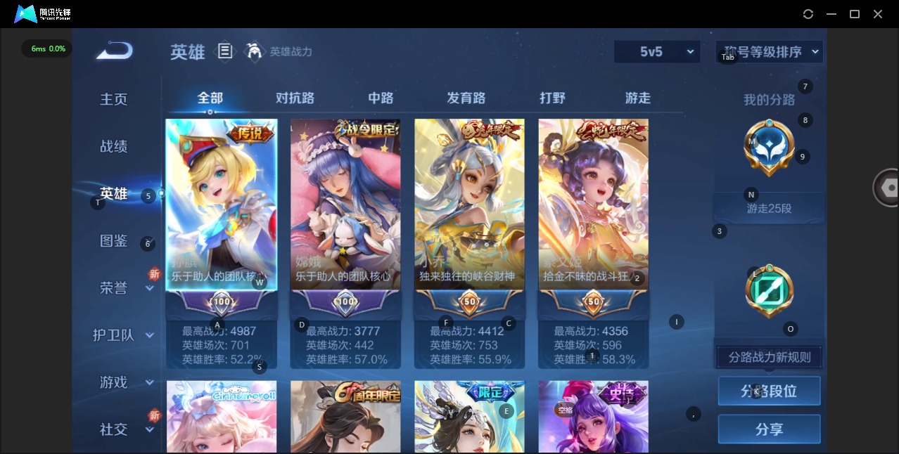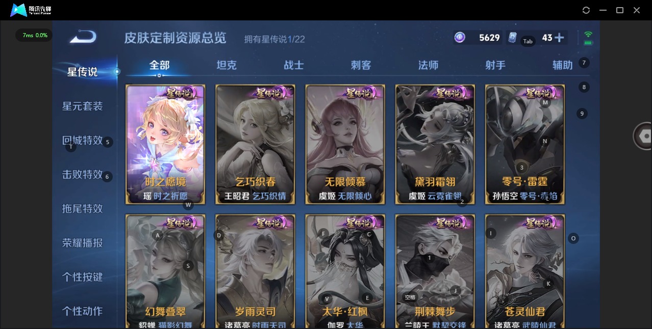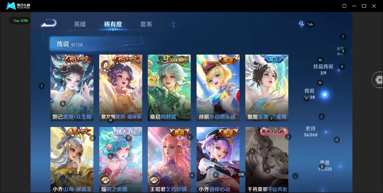 - [11497624]V7 7传说 122英雄 215皮肤 可修改实名 传说皮:黄金狮子座,地狱火,无双飞将,遇见神鼓 珍宝阁皮:妄想食味,胡桃夹子 限定皮:鸣野蒿,至尊宝,傲雪梅枪,五谷丰年,武圣,梁祝,天狼征服者,李小龙,寅虎·瑞焰(虎皮蛋子) 史诗皮:茶境仙,蔬乡物语(鲁班七号),超元猎域,乘龙·忆丹青(大乔年限),化蝶舞,破空之剑,遇见神鹿,紫霞仙子,电玩小子(小书包),黄金分割率,特工魅影,千年之狐,江河有灵,百解令(蒙犽),蒙恬荣光圣徽,青蛇,电玩·爆裂旋风,猫狗日记-孙策,乱世虎臣,节奏热浪,修罗,女仆咖啡,摇滚巨星,水果甜心,天才门将,星夜王子,心灵骇客,功夫厨神,德古拉伯爵,暗隐猎兽者,鬼剑武藏,暗渊魔法,心灵战警,乐园奇幻夜,舞动绿茵,地狱岩魂,纤云弄巧,缤纷独角兽,乘风破浪,逐浪之夏,水晶猎龙者,曙光守护者,箭羽风息,金属风暴,圣诞狂欢,圣诞恋歌,鹰眼统帅,魅力维加斯,无心,未来纪元-赵云
