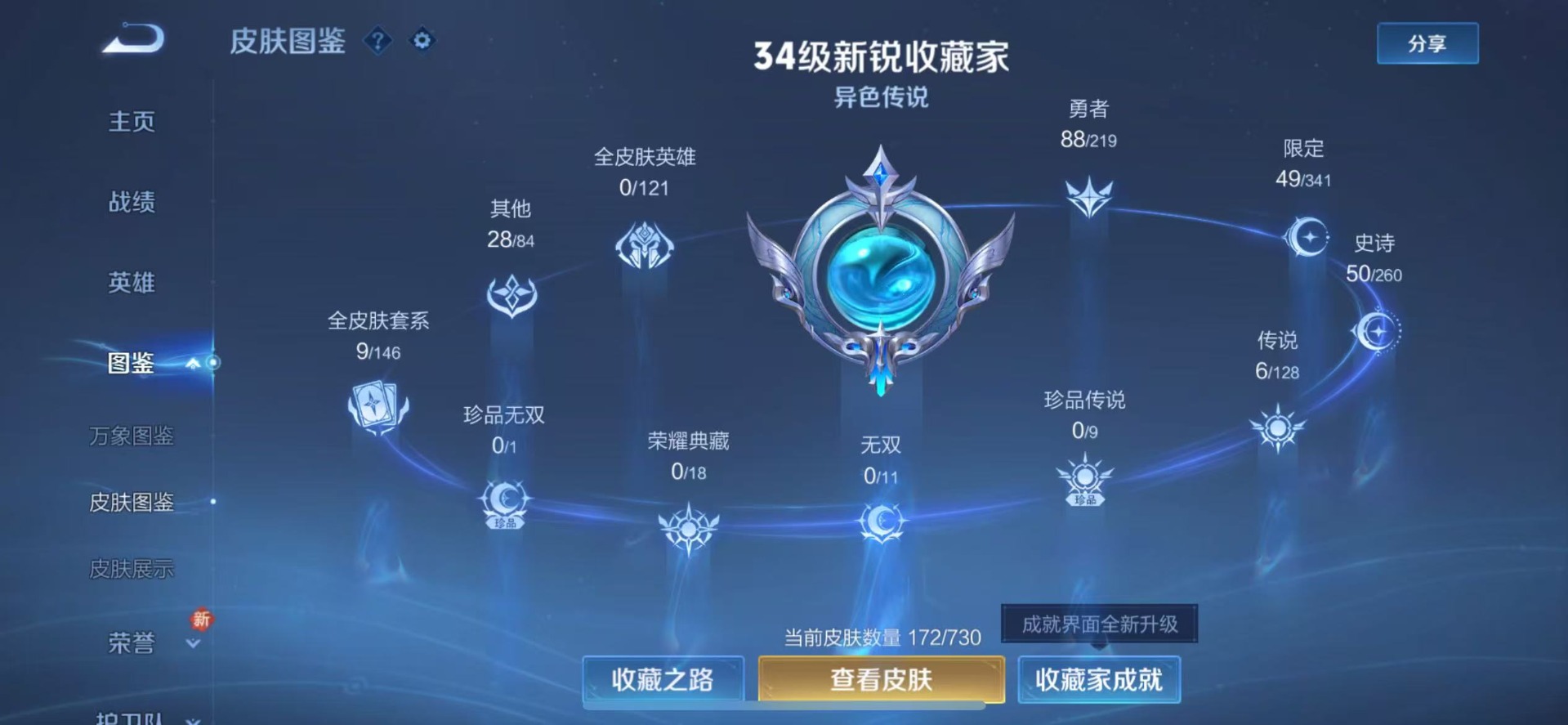 - PX_2093845-实名: 可修改 贵族等级: V7 英雄数: 122 皮肤数: 198 传说皮: 炽阳神光,乘龙·问璇玑 限定皮: 梁祝,匿光决锋者,五谷丰年,山海·玄木吟,齐天大圣,鸣野蒿,愿照·千秋盛