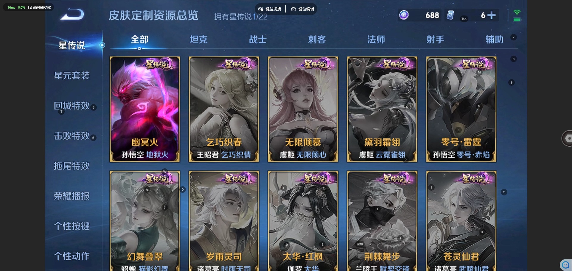 裴擒虎李小龙,孙悟空大圣娶亲,孙悟空至尊宝,鲁班七号乒乒小将,百里守约朱雀志,吕布御风骁将,虞姬霸王别姬,诸葛亮时雨天司