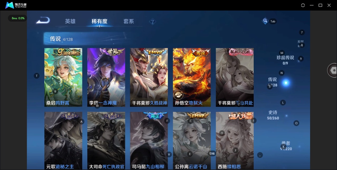 - [11498397]V7 7传说 123英雄 217皮肤 可修改实名 优质装备:云鹰飞将(小将军),炽阳神光,超时空战士-狄仁杰,惊梅引 珍宝阁皮:女武神,玩趣恶龙 限定皮:愿照·九州拓(澜年限),愿照·山河定(司空震年限),鸣野蒿,神威(电光马子),飞衡(韩信年限),高山流水,冰锋战神,梁祝,天狼狩猎者,一生所爱,冰霜恋舞曲,百木心枪,梦圆繁星,山海·玄木吟(马可年限) 史诗皮:破空之剑,百相守梦-百里守约,炽弈燎原,黄金分割率,匿光破解者,江河有灵,蒙恬荣光圣徽,偶像歌手,魅语,无限星赏官,晚萤,冰冠公主,猫狗日记-孙策,猫狗日记-大乔,乱世虎臣,节奏热浪,修罗,女仆咖啡,水果甜心,天才门将,功夫厨神,德古拉伯爵,暗隐猎兽者,幽灵船长,鬼剑武藏,暗渊魔法,心灵战警,天秀·启明,繁星吟游(呼啦呼啦),缤纷独角兽,乘风破浪,逐浪之夏,水晶猎龙者,箭羽风息,金属风暴,原初追逐者,圣诞恋歌,鹰眼统帅,魅力维加斯,黎明之约,无心,未来纪元-赵云