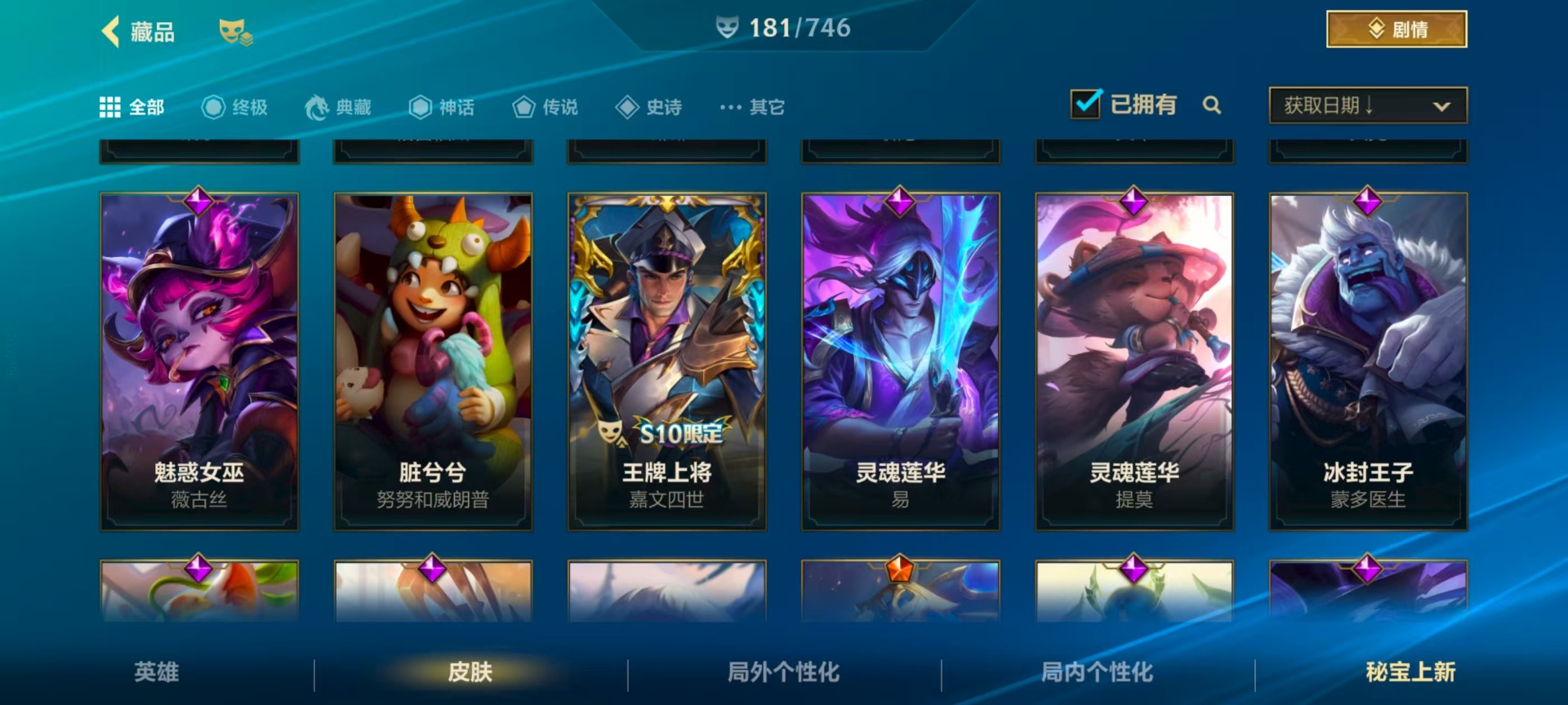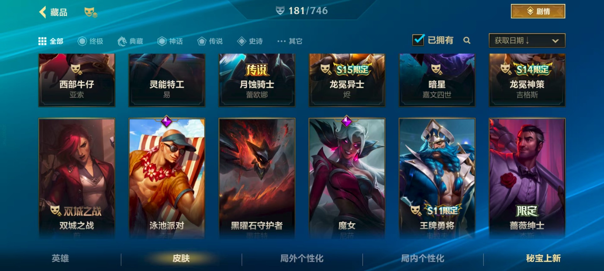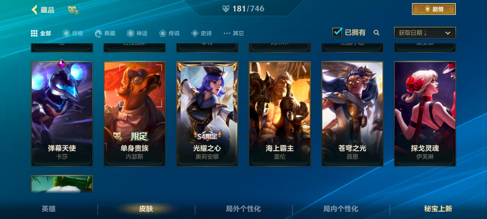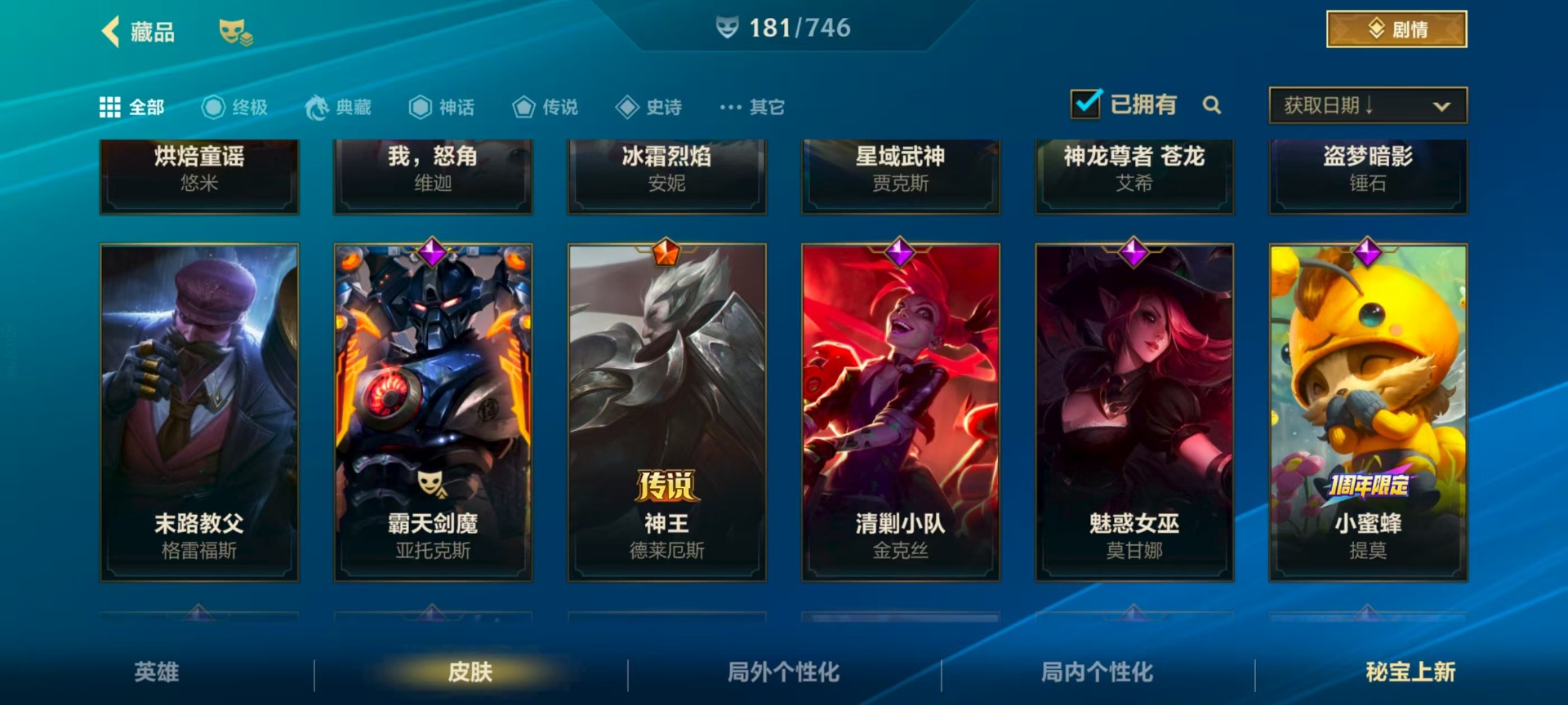 [11908576]1神话 11传说 87史诗 181皮肤 可二次 可修改实名 优质装备:光明哨兵薇恩,神龙尊者 驭风啸龙,神王诺手,天煞劫,星之守护者阿狸,月蚀骑士蕾欧娜,玉剑传说 武剑仙,源计划:林,源计划:泯灭,龙的传人,星域武神贾克斯,心之钢凯隐,龙的传人 段位:铂金 传说皮:黎明使者永恩 亮点:光明哨兵薇恩,神龙尊者 驭风啸龙,神王诺手,天煞劫,星之守护者阿狸,月蚀骑士蕾欧娜,玉剑传说 武剑仙,源计划:林,源计划:泯灭,龙的传人,星域武神贾克斯,心之钢凯隐,龙的传人