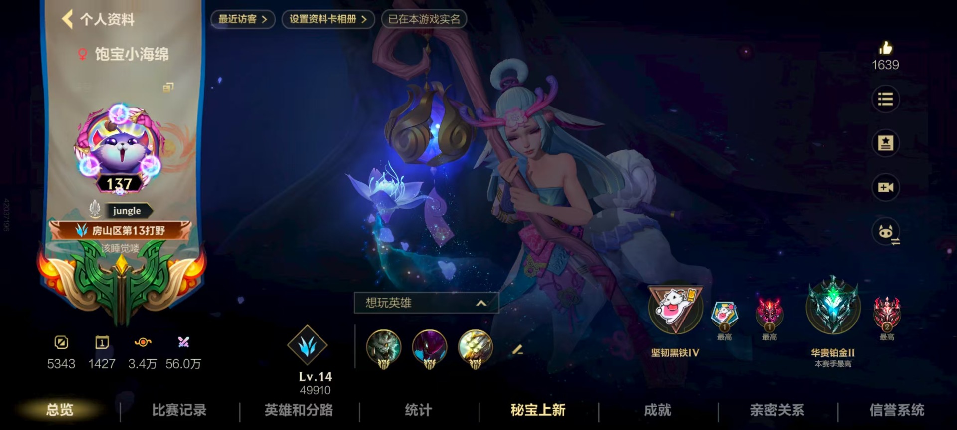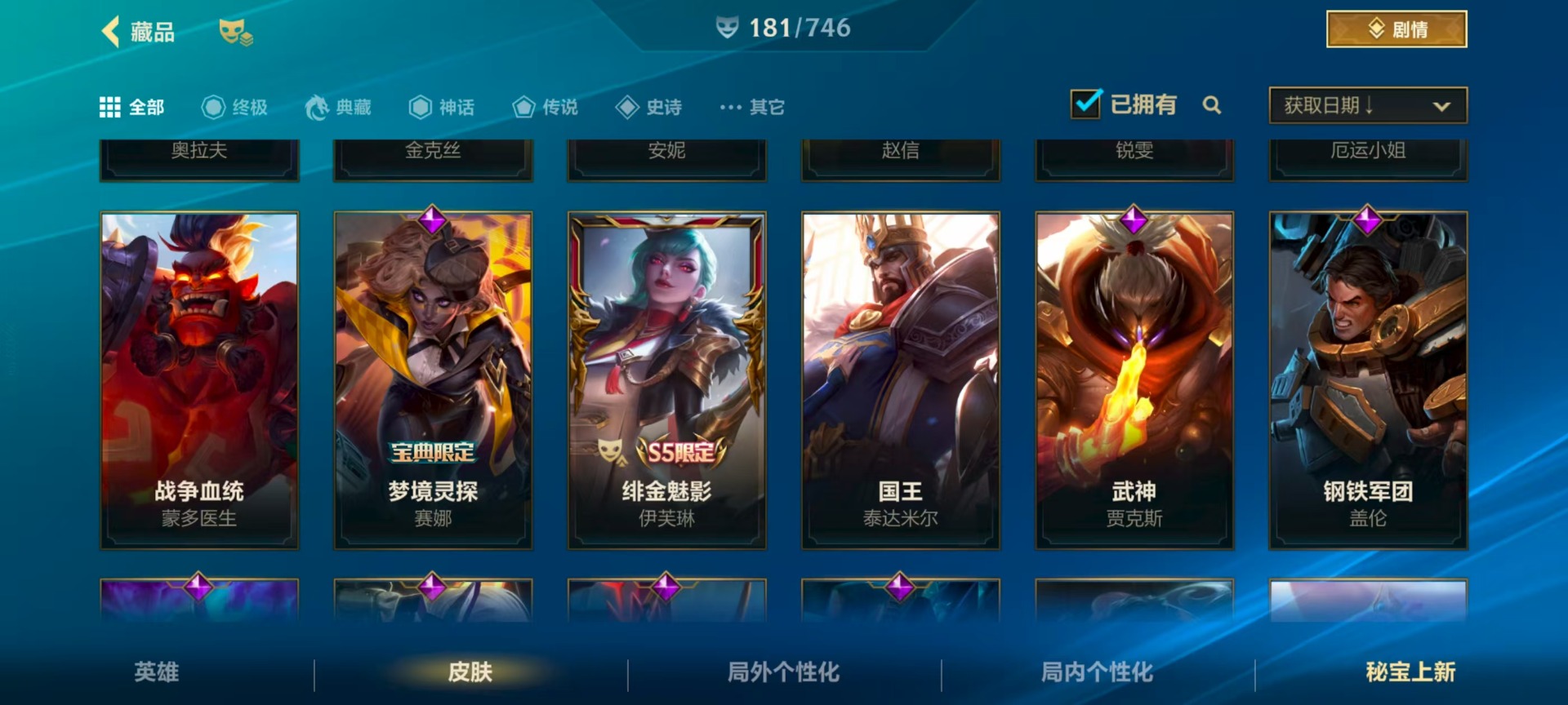- PX_2017705-实名: 可修改 贵族等级: V7 英雄数: 121 皮肤数: 238 荣耀水晶: 拾光映像 传说皮: 黄金狮子座,仲夏夜之梦,游龙清影,挚爱花嫁,山海·苍雷引,澜逐花归海,乘龙·铭钟鼎,幻光神枪 限定皮: 遇见飞天,李小龙,游园惊梦,梁祝,时雨天司,引擎之心,辉光之辰,异界灵契,岱宗,天狼溯光者,神威,蜜橘之夏,逐梦之音,青春决赛季,凤求凰,美猴王,凤凰于飞,高山流水,孙行者