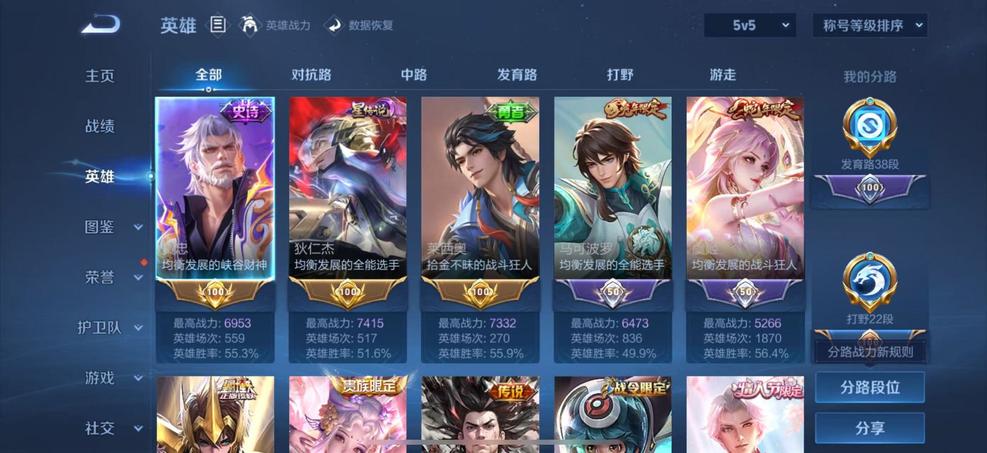 - PX_2059688-实名: 可修改 贵族等级: V5 英雄数: 108 皮肤数: 76 传说皮: 久胜战神 限定皮: 鸣野蒿,愿照·九州拓