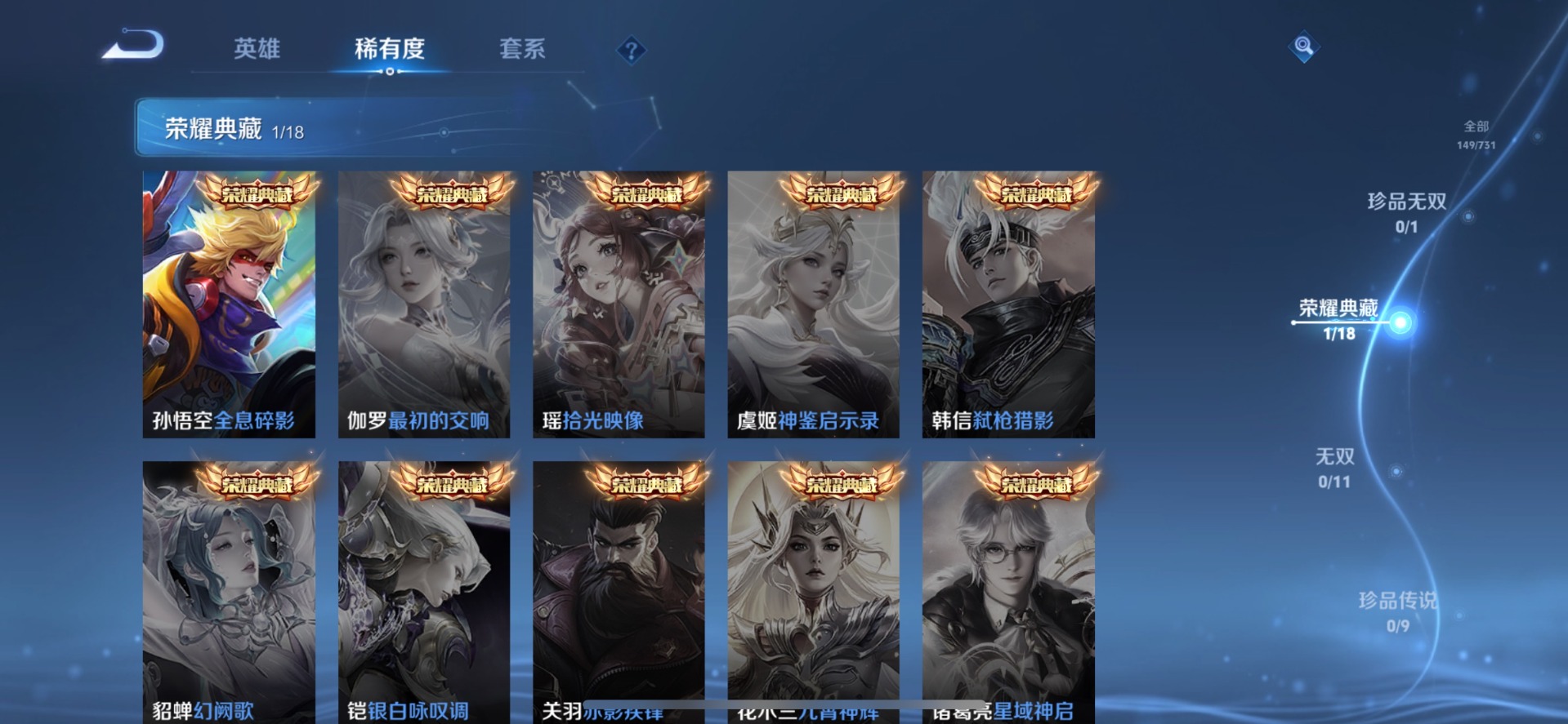 - PX_2097335-安卓Q 【可二次】 英雄数量:119 皮肤数量:118 贵族等级:贵族V7 荣耀典藏1 传说品质2 史诗品质24弑枪猎影 白虎志 末日机甲女 冰锋战神 白昼王子 魅力维加斯 皇家上将 德古拉伯爵 圣诞狂欢 梅西 大圣娶亲 瑞麟志 朱雀志 逐梦之星 特工魅影 猫狗日记男 黄金分割率 水晶猎龙者 白龙吟 暗夜猫娘 紫霞仙子 千年之狐 偶像歌手 冰冠公主 鹰眼护卫 魔术师 蓝屏警告