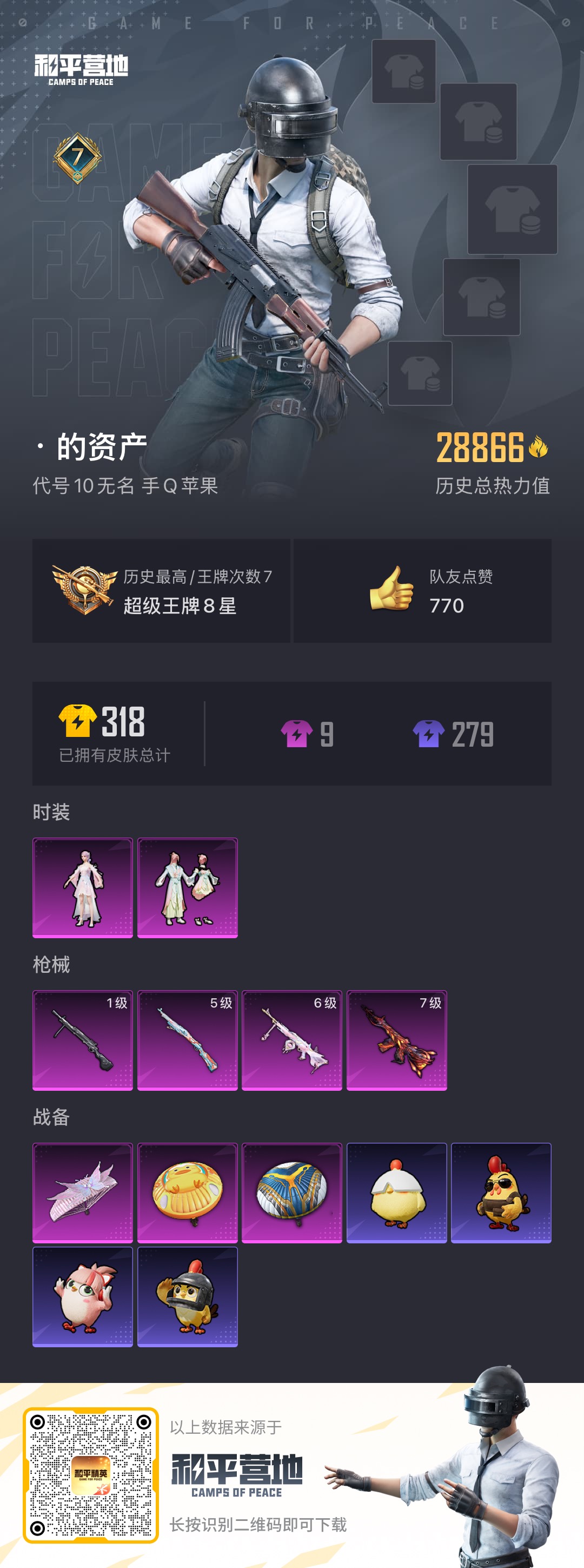 - PX_2100061- 苹果手Q-16王牌印记-5粉装-6特效枪-0载具-88849热力值-211套装-300枪皮-0卓越印记-0传奇印记 【5粉装】,洛天依,绯月迷踪,绯穹魔姬,银刃赛罗,星夜魔法师 【6特效枪】M416-五爪金龙-7级 Kar98K-巳巳如意-5级 汤姆逊-热量炸弹-5级 野牛-绯月迷踪-4级 镰刀-幽影之判-2级 平底锅-桃粉嫣然-3级 【6稀有紫装】,8号机,沙漠守护者,