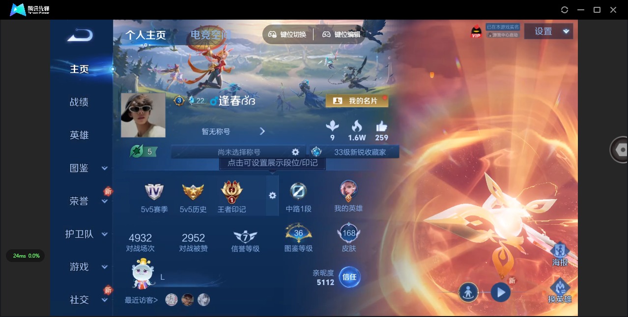 - [11683148]V6 1典藏 2传说 124英雄 244皮肤 可修改实名 荣耀水晶:鸣剑·曳影 传说皮:黄金狮子座 珍宝阁皮:优雅恋人,蔷薇恋人 限定皮:鸣野蒿,至尊宝,傲雪梅枪,五谷丰年,冰锋战神,梁祝,李小龙,默契交锋-花木兰 史诗皮:鸭鸭历险记-刘禅,龙之律动,石田雨龙,紫霞仙子,苍穹之光,特工魅影,千年之狐,冰冠公主,偶像歌手,魅语,暗夜猫娘,龙骑士(小龙虾),末日机甲-吕布,猫狗日记-孙策,乱世虎臣,女仆咖啡,摇滚巨星,水果甜心,星夜王子,心灵骇客,功夫厨神,暗隐猎兽者,幽灵船长,鬼剑武藏,心灵战警,天秀·启明,纤云弄巧,繁星吟游(呼啦呼啦),缤纷独角兽,乘风破浪,逐浪之夏,月团寄思,水晶猎龙者,金属风暴,圣诞狂欢,圣诞恋歌,鹰眼统帅,魅力维加斯,黎明之约,无心,未来纪元-赵云