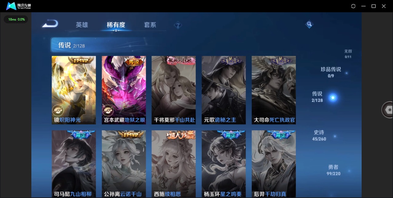 - [11298135]V7 3传说 119英雄 166皮肤 可修改实名 优质装备:黄金狮子座 传说皮:幻光神枪 珍宝阁皮:蔷薇恋人 限定皮:凤求凰(白切鸡),冰锋战神,游园惊梦,梁祝,李小龙 史诗皮:紫霞仙子,千年之狐,偶像歌手,末日机甲-吕布,女仆咖啡,摇滚巨星,水果甜心,心灵骇客,德古拉伯爵,幽灵船长,纤云弄巧,繁星吟游(呼啦呼啦),逐浪之夏,原初追逐者,圣诞狂欢,圣诞恋歌,鹰眼统帅,魅力维加斯