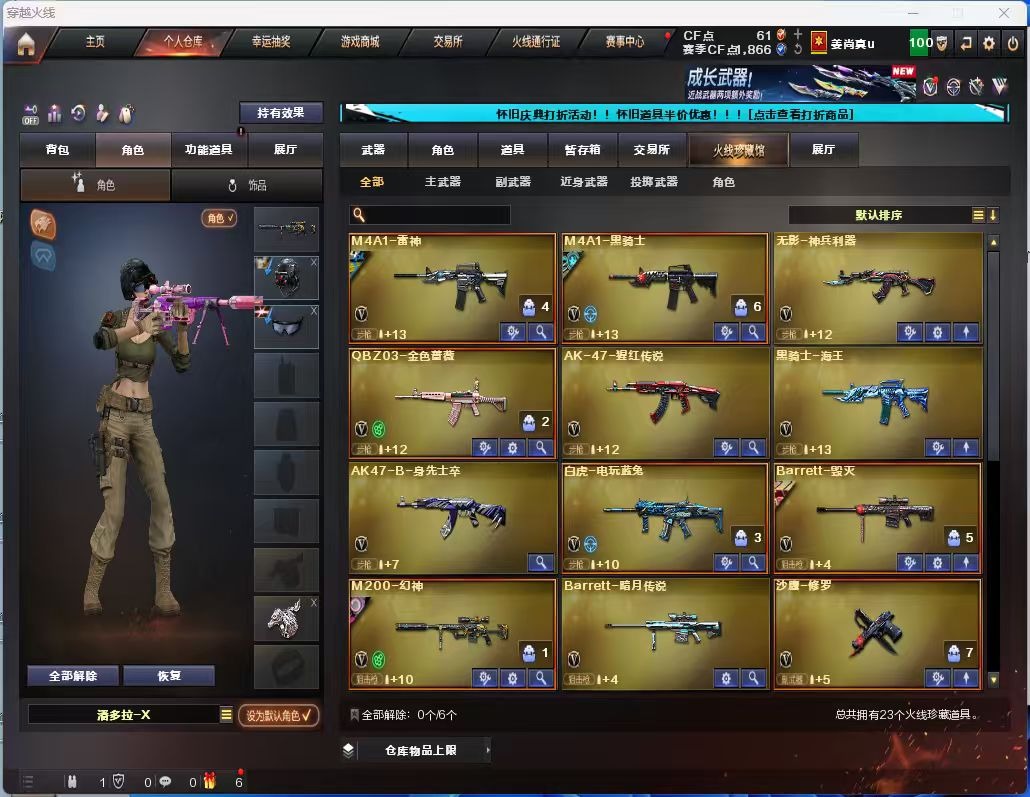 - [12327060]【商品标题】:广东一区-23V-2王者-0炫金 【传说角色】:传说星骇 【热门武器】:M200-幻神,金色蔷薇-古蛇迷踪,修罗-古蛇迷踪,金色小号,牛牛-AK47,M4A1-黑骑士,沙鹰-修罗,炽芒蝶刃 【音效卡】:修罗-云海游龙音效卡 【稀有皮肤】:白虎-白鲨-CFPLS23冠军,金色蔷薇-量子蔷薇 皮肤,金色蔷薇-破浪逐光 皮肤,金色蔷薇-秘岩封印 皮肤 【角色】:王者-魅影,葵,铁骑荣耀,暗黑审判 【人偶武器】:牛牛-AK47,迷你裂空之翼,迷你波特博士,迷你曼提柯尔,夺魂,迷你牛牛,迷你火种,生化手雷-机甲核心 【暴走生化】:超级对讲机 【挑战大师】:机甲撕裂者III,惩戒者III,试炼破坏者III,VEPR-12-金魔 【英雄级武器】:柯尔特-竞技荣光*3,擎天-竞技荣光,高爆手雷-竞技荣光,烟雾弹-竞技荣光,闪光弹-竞技荣光,金色蔷薇-古蛇迷踪,M4A1-雷神,M4A1-黑骑士,AK47-火麒麟,M200-幻神,黑武士-锦绣游龙,AK-47-猩红传说,AK47-B-战神,M4A1-赤狱骑士,修罗-古蛇迷踪,沙鹰-修罗,炽芒蝶刃,擎天*2,屠龙 【特殊枪械】:1黑骑士