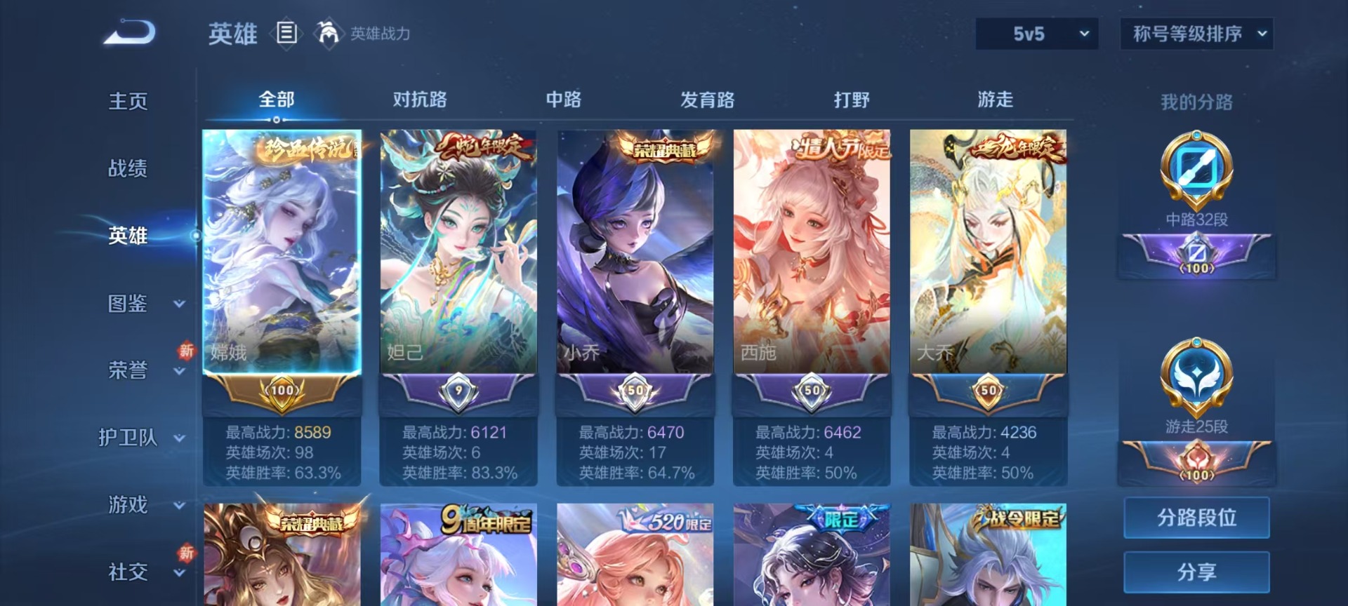 - PX_2107320-实名: 可修改 贵族等级: V7 英雄数: 124 皮肤数: 146 荣耀水晶: 武则天 星传说: 幻海之心,未来机甲 传说皮: 黄金射手座,云霓雀翎 限定皮: 李小龙,游园惊梦,时雨天司,魔法小厨娘,飞衡,大圣娶亲,高山流水