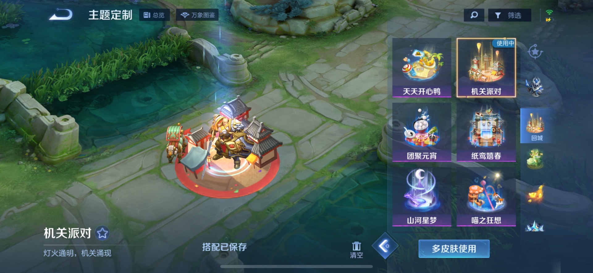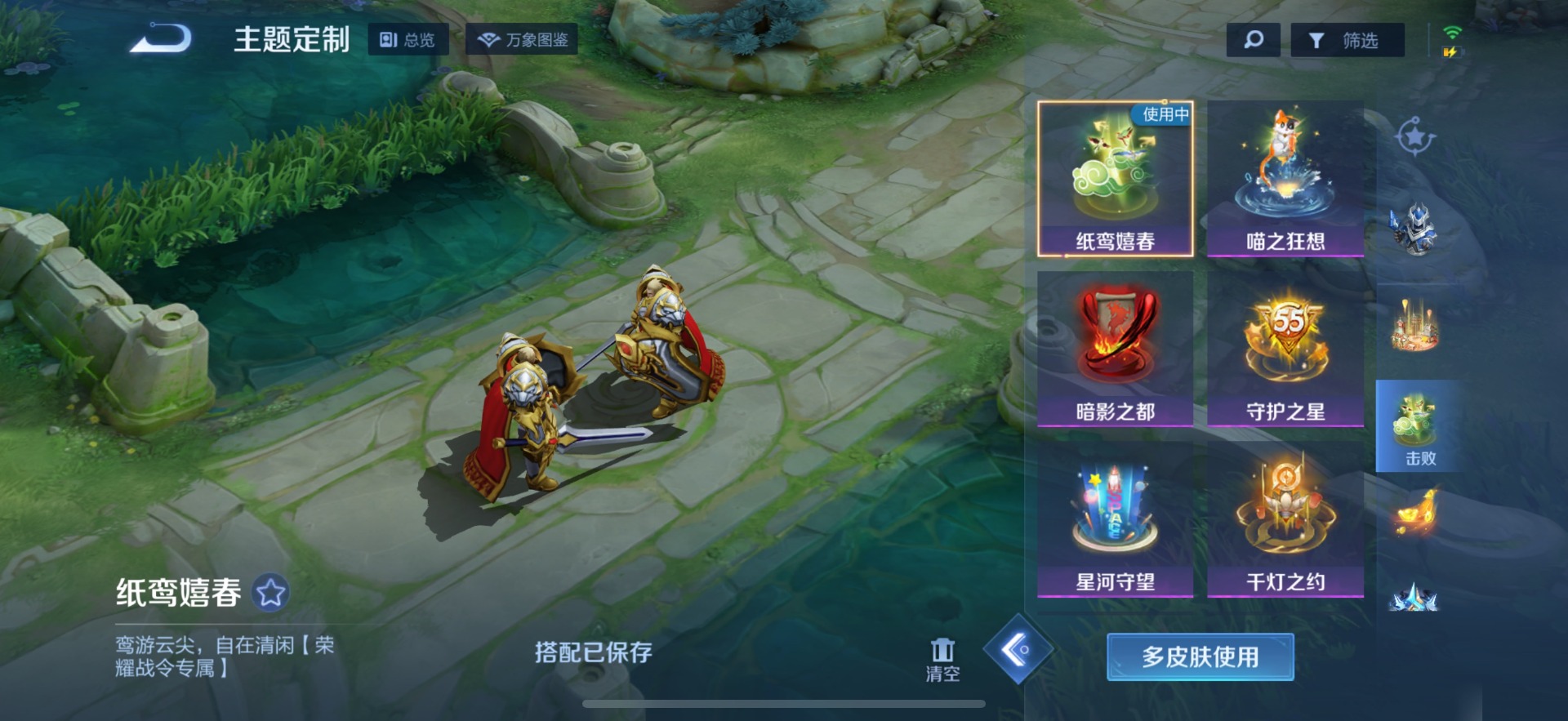 刘邦夺宝奇兵,夏侯惇朔风刀,老夫子醍醐杖,沈梦溪星空之诺,盾山御銮,曹操烛龙,牛魔御旌,鲁班七号狮舞东方,元歌云间偶戏,明世隐疑决卦,蒙犽狂想玩偶喵,马可波罗暗影游猎,白起狰,鬼谷子原初探秘者,狄仁杰万华元夜,芈月重明,程咬金演武夺筹,李元芳银河之约,弈星混沌棋,钟馗神迹守卫,钟馗驱傩正仪,狂铁御狮,太乙真人饕餮