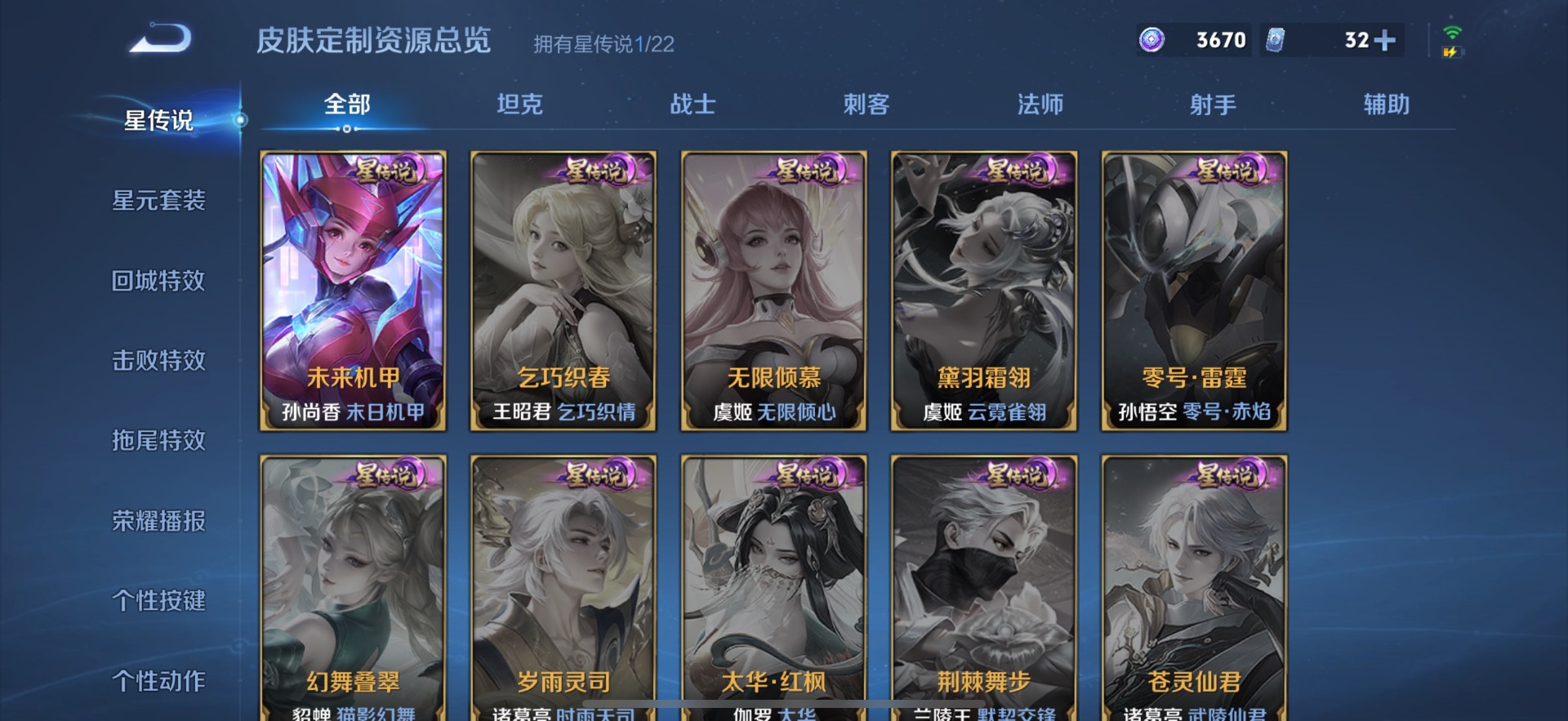 - [11293140]V6 1典藏 2传说 124英雄 244皮肤 可修改实名 荣耀水晶:鸣剑·曳影 传说皮:黄金狮子座 珍宝阁皮:优雅恋人,蔷薇恋人 限定皮:鸣野蒿,至尊宝,傲雪梅枪,五谷丰年,冰锋战神,梁祝,李小龙,默契交锋-花木兰 史诗皮:鸭鸭历险记-刘禅,龙之律动,石田雨龙,紫霞仙子,苍穹之光,特工魅影,千年之狐,冰冠公主,偶像歌手,魅语,暗夜猫娘,龙骑士(小龙虾),末日机甲-吕布,猫狗日记-孙策,乱世虎臣,女仆咖啡,摇滚巨星,水果甜心,星夜王子,心灵骇客,功夫厨神,暗隐猎兽者,幽灵船长,鬼剑武藏,心灵战警,天秀·启明,纤云弄巧,繁星吟游(呼啦呼啦),缤纷独角兽,乘风破浪,逐浪之夏,月团寄思,水晶猎龙者,金属风暴,圣诞狂欢,圣诞恋歌,鹰眼统帅,魅力维加斯,黎明之约,无心,未来纪元-赵云