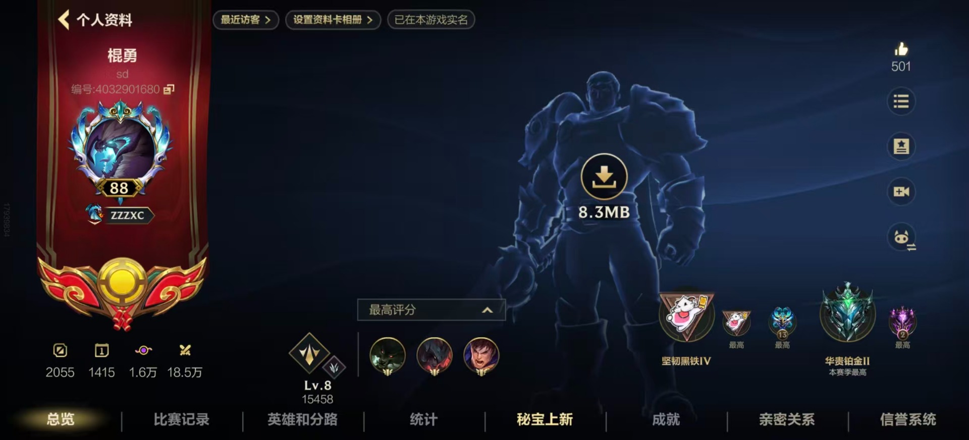 [11911018]8传说 33史诗 85皮肤 可二次 可修改实名 优质装备:暗星尊,律政大亨,神王盖伦,西部天使寒冰,源计划:泯灭,最终BOSS维迦,光明哨兵格雷福斯 段位:铂金 限定皮肤:冬季仙境发条,邪恶圣诞老人小法 传说皮:太空律动机器人 亮点:暗星尊,律政大亨,神王盖伦,西部天使寒冰,源计划:泯灭,最终BOSS维迦,光明哨兵格雷福斯