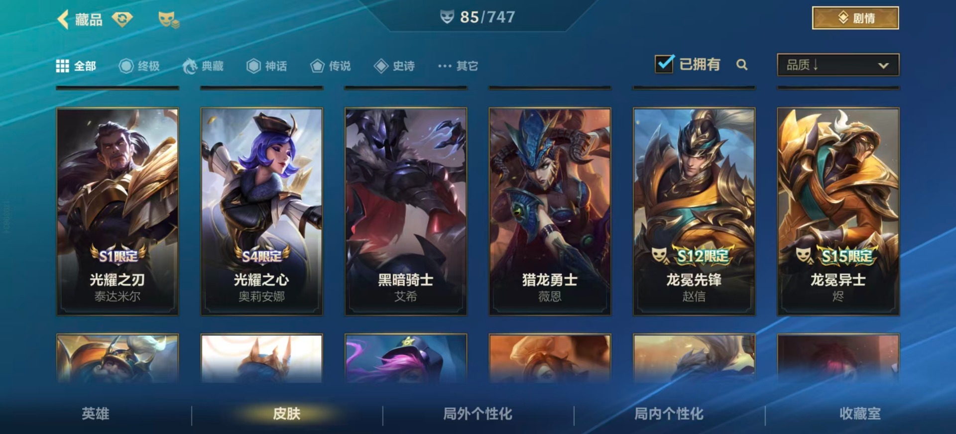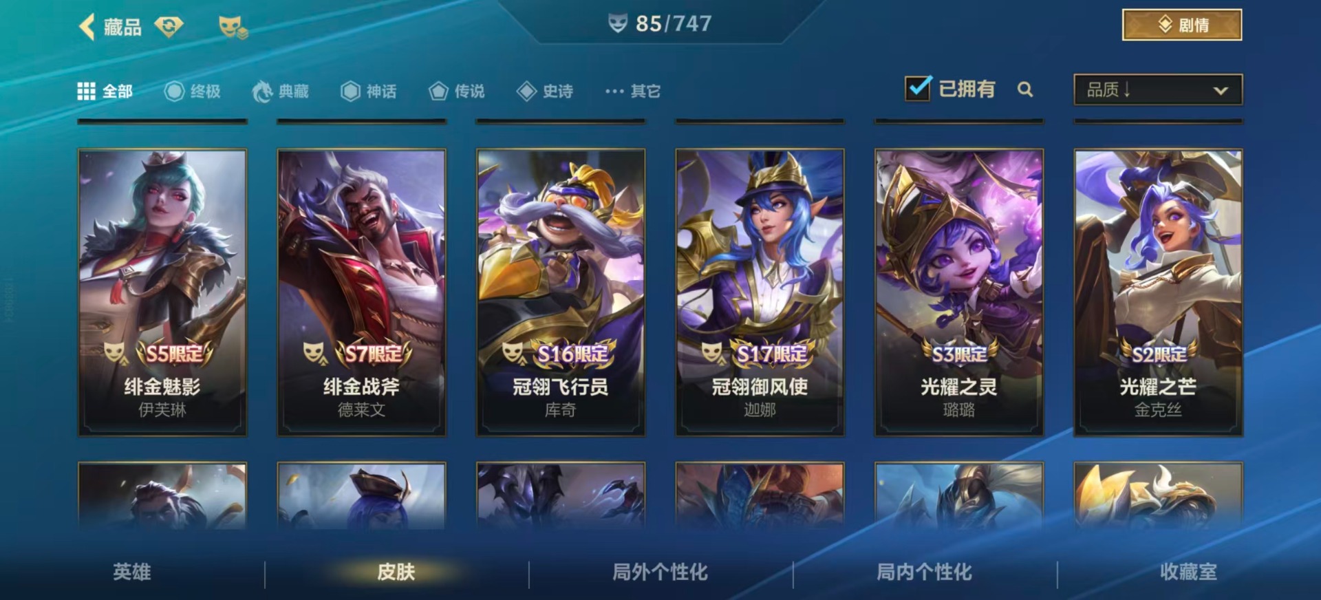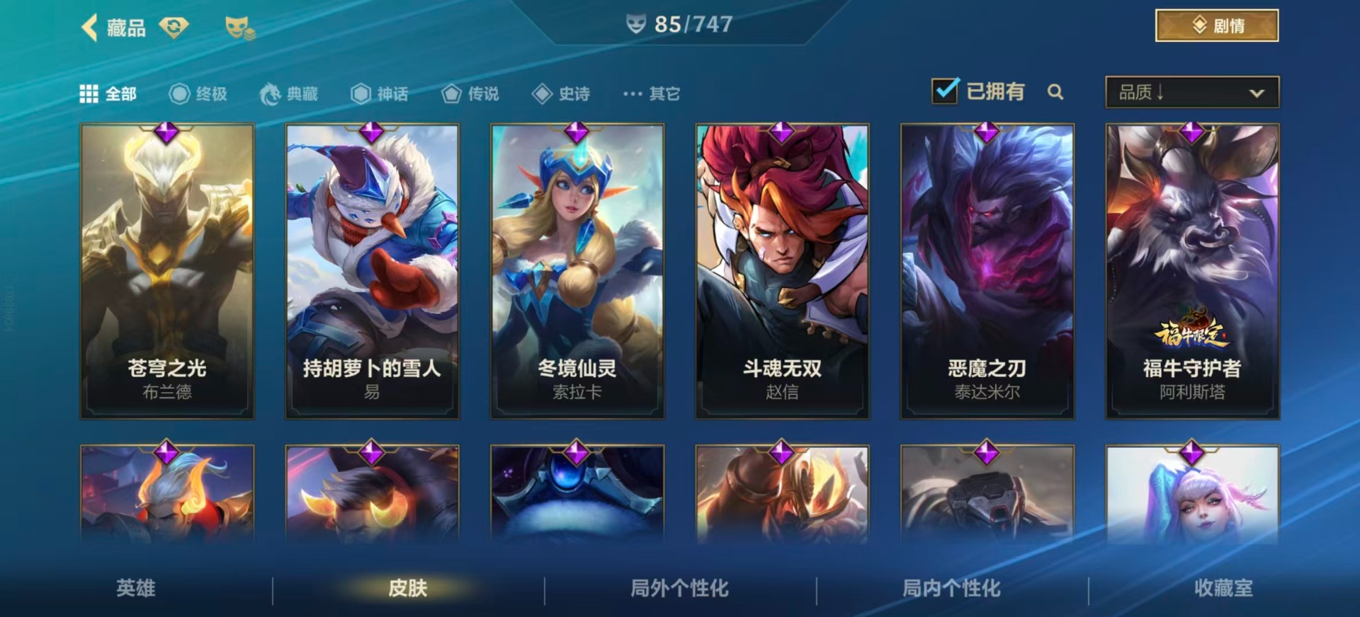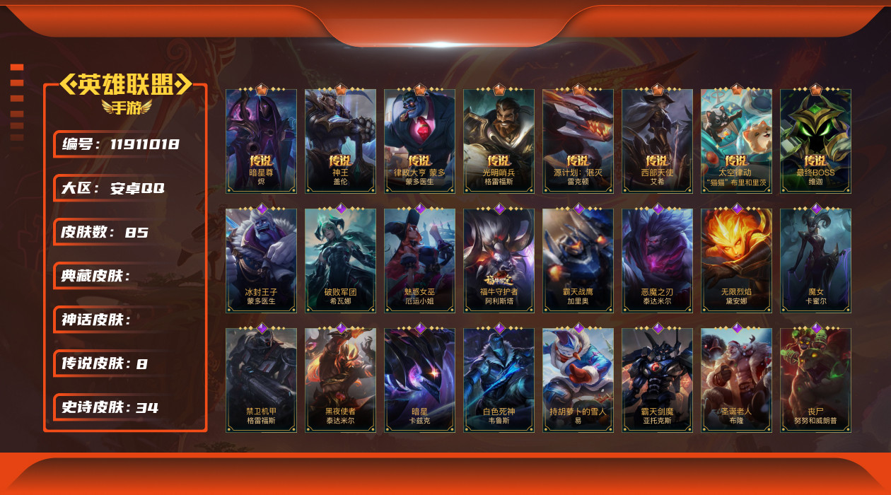 - [11302503]V8 7传说 125英雄 238皮肤 可修改实名 安全保护中 传说皮:猫影幻舞,时之恋人-刘备(电焊工),妄想实况,澜逐花归海 珍宝阁皮:万物之道,优雅恋人,玩趣恶龙 限定皮:陌上桑,鸣野蒿,补天,山海·碧波行(瑶年限),遇见飞天,高山流水,五谷丰年,游园惊梦,梁祝,李小龙,如梦令-嫦娥,寅虎·心曲(虎婆),启示之音 史诗皮:星界战将,茶境仙,鸭鸭历险记-刘禅,灵蛊蚀心,龙之律动,石田雨龙,百相守梦-百里守约,怒海争锋,海诺心动手记,上官婉儿群星魔术团,乘龙·聚宝船(安琪拉年限),炽弈燎原,百相守梦-周瑜,破空之剑,苍穹之光,黄金分割率,特工魅影,千年之狐,江河有灵,高渐离燃音魔法,百解令(蒙犽),匿光破解者,蒙恬荣光圣徽,晚萤,魅语,银翎春语,猫狗日记-大乔,乱世虎臣,修罗,女仆咖啡,摇滚巨星,水果甜心,星夜王子,心灵骇客,功夫厨神,德古拉伯爵,暗隐猎兽者,幽灵船长,鬼剑武藏,暗渊魔法,心灵战警,乐园奇幻夜,天秀·启明,诗语江南,纤云弄巧,拒霜思,缤纷独角兽,乘风破浪,逐浪之夏,月团寄思,水晶猎龙者,箭羽风息,唤灵魅影,金属风暴,原初追逐者,圣诞狂欢,圣诞恋歌,鹰眼统帅,魅力维加斯,黎明之约,滕王阁序,无心,未来纪元-赵云