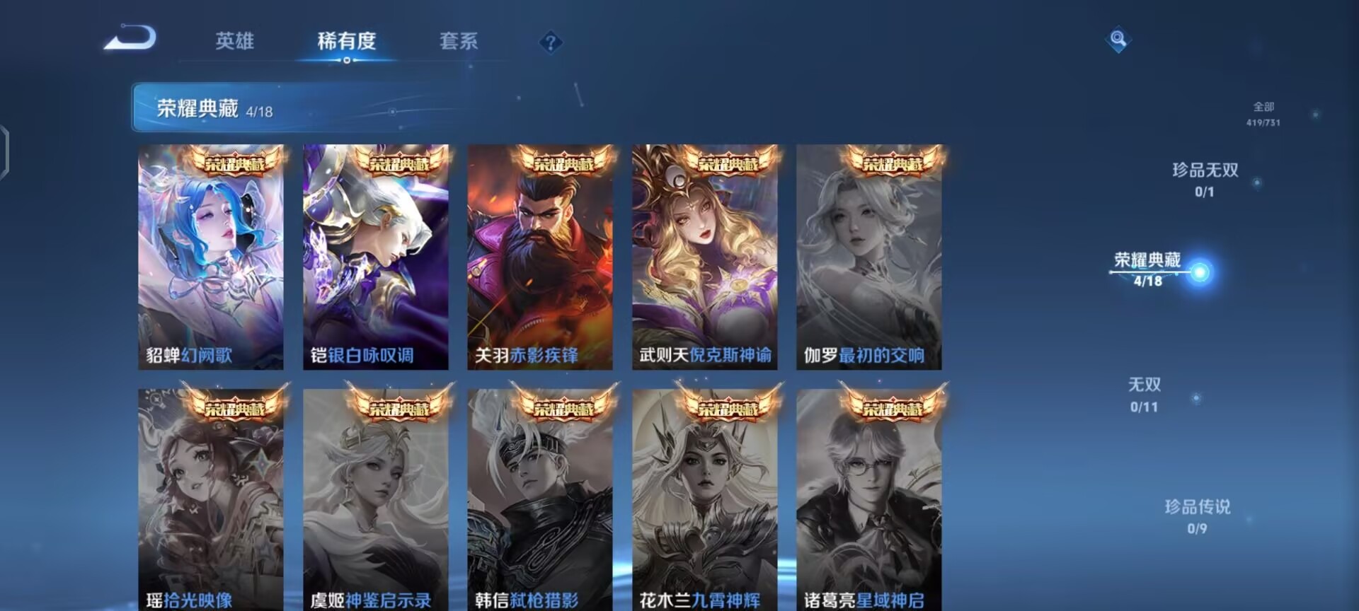 赵云淬星耀世,干将莫邪久胜战神,孙策挚爱之约,貂蝉猫影幻舞,艾琳觅芳踪,马超无双飞将,虞姬云霓雀翎,貂蝉曦玄引