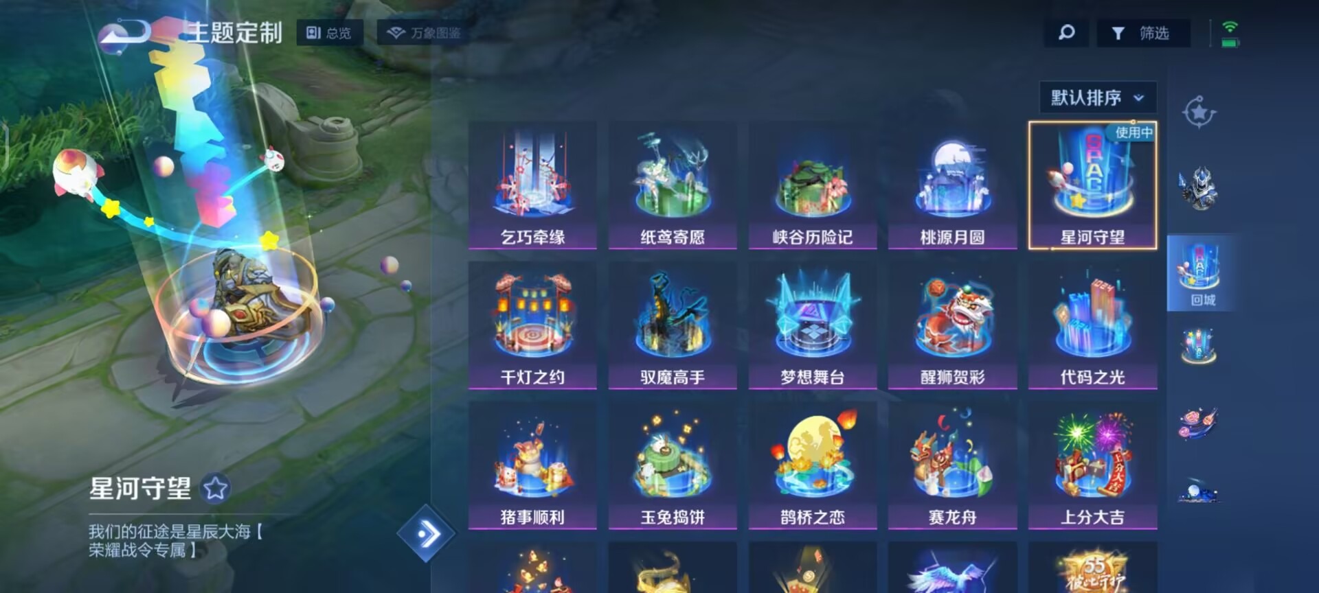 刘邦夺宝奇兵,夏侯惇朔风刀,老夫子醍醐杖,沈梦溪星空之诺,沈梦溪大漠名商,盾山御銮,曹操烛龙,孙膑妖精王,苏烈千军破阵,典韦穷奇,典韦蓝屏警告,达摩沙漠行僧,牛魔御旌,鲁班七号狮舞东方,庄周蜃楼王,元歌云间偶戏,兰陵王金庭之子,裴擒虎擒涛扼浪,鲁班大师探海日志,明世隐疑决卦,蒙犽狂想玩偶喵,白起狰,亚瑟狮心王,鬼谷子原初探秘者,张良古海寻踪,女娲朔望之晖,桑启海盐诗旅,狄仁杰万华元夜,芈月重明,程咬金演武夺筹,扁鹊炼金王,李元芳银河之约,李元芳云中旅人,弈星混沌棋,虞姬凯尔特女王,米莱狄御霄,钟馗神迹守卫,钟馗驱傩正仪,狂铁御狮,太乙真人饕餮