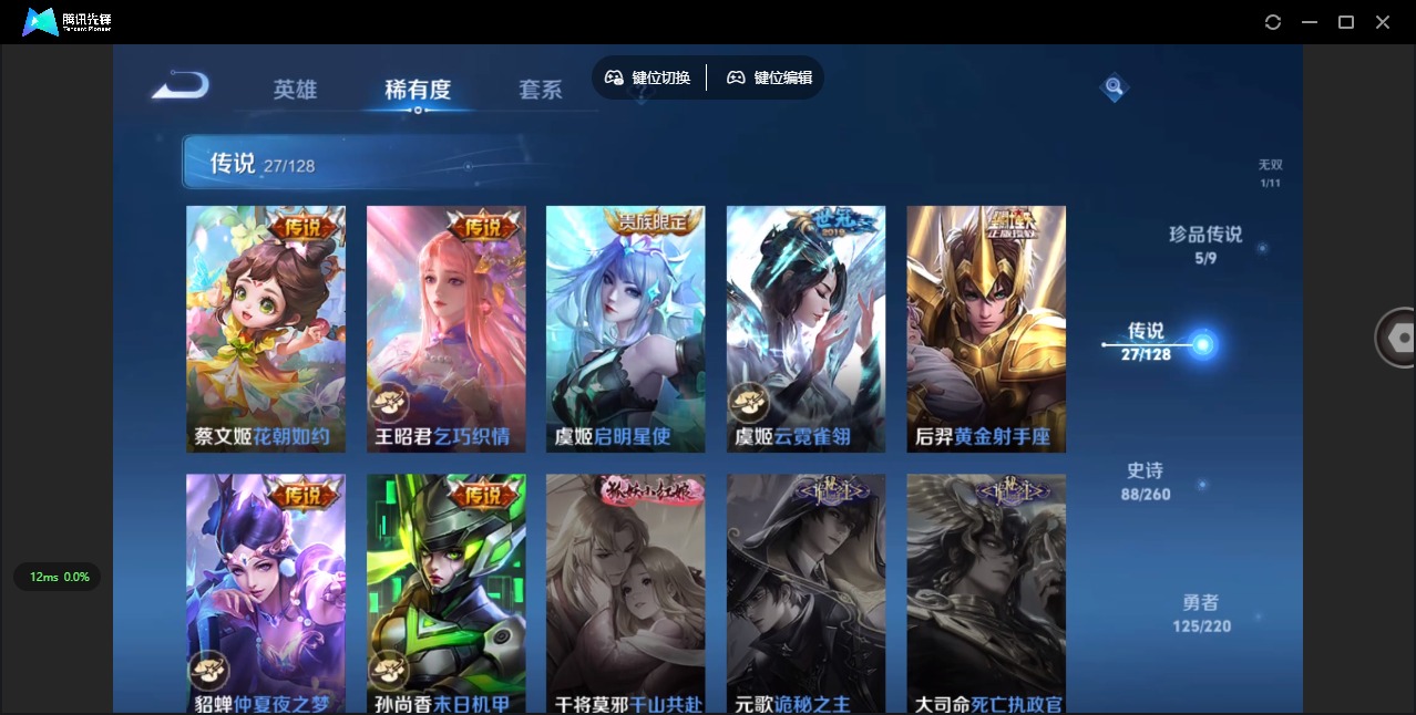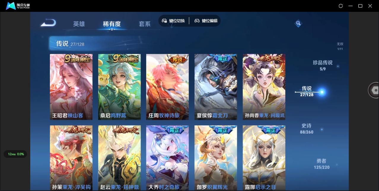 - [11496866]芈月典藏,太华,紫霞,至尊宝,-可二次-V9-123英雄-244皮肤-1典藏-14传说-48史诗 淬星耀世-赵云 山海·苍雷引-曜 山海·炽霜斩-李信 太华-伽罗 默契交锋-兰陵王 时雨天司-诸葛亮 冰锋战神-关羽 冰冠公主-雅典娜 至尊宝-孙悟空 街头霸王-韩信