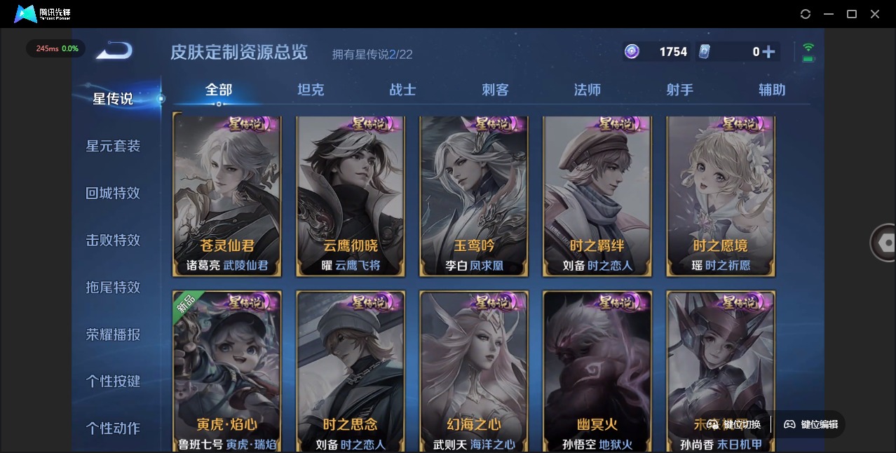 刘邦德古拉伯爵,夏侯惇乘风破浪,哪吒雪上飞焰,铠曙光守护者,曹操幽灵船长,伽罗箭羽风息,廉颇地狱岩魂,伽罗琥珀纪元,小乔缤纷独角兽,孙策猫狗日记,不知火舞魅语,赵怀真器灵·浮梦炉,鲁班七号电玩小子,项羽苍穹之光,吕布圣诞狂欢,吕布末日机甲,露娜紫霞仙子,诸葛亮黄金分割率,司马懿暗渊魔法,刘禅天才门将,刘禅绅士熊喵,宫本武藏鬼剑武藏,亚连糖绘人间,兰陵王暗隐猎兽者,貂蝉圣诞恋歌,李白谪仙醉月,苍狼魂孤将,花木兰水晶猎龙者,夏洛特永昼,李白千年之狐,安琪拉心灵骇客,蒙犽百解令,白起星夜王子,白起苍鳞隐世,亚瑟心灵战警,狄仁杰绮世丹青,嬴政摇滚巨星,程咬金功夫厨神,雅典娜冰冠公主,雅典娜黎明之约,韩信白龙吟,百里守约特工魅影,李元芳逐浪之夏,墨子金属风暴,蔡文姬舞动绿茵,王昭君偶像歌手,嫦娥拒霜思,钟馗乐园奇幻夜,橘右京修罗,关羽百相守梦