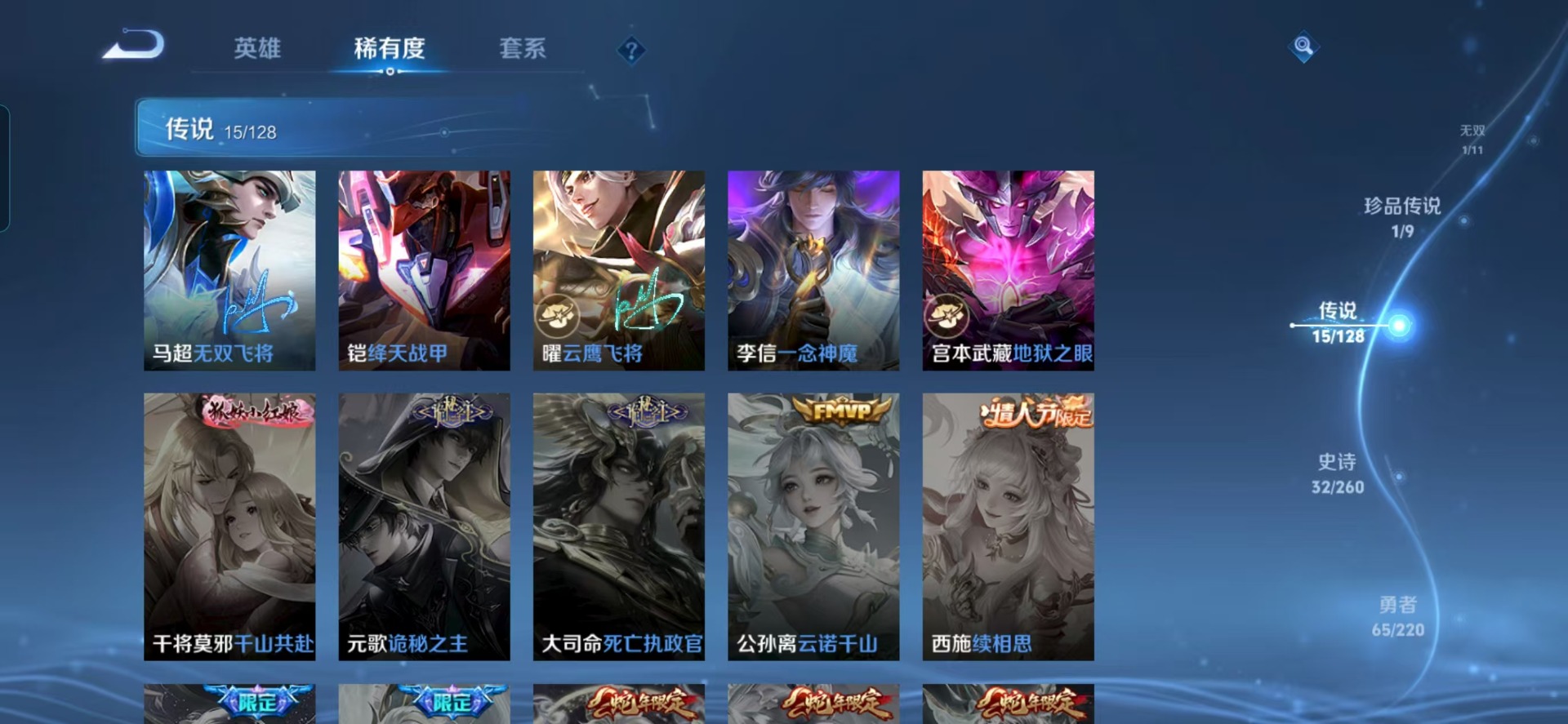 [11911413]V7 1无双 1珍品传说 15传说 120英雄 144皮肤 可修改实名 优质装备:器灵·螭龙剑,怪盗基德,云鹰飞将(小将军),绛天战甲(鸡嘴战神),一念神魔,地狱之眼,无双飞将,妄想实况,惊梅引,霜月吟,澜逐花归海 传说皮:九山相柳 限定皮:愿照·九州拓(澜年限),愿照·岁时盈(虞姬年限),鸣野蒿,至尊宝,诗剑行,怒海麟威,山海·玄木吟(马可年限) 史诗皮:鸭鸭历险记-刘禅,化蝶舞,星界战将,百相守梦-周瑜,茶境仙,破空之剑,百相守梦-百里守约,星界特工,百相守梦-黄忠,织梦人,特工魅影,青蛇,猫狗日记-孙策,时之恋人-孙尚香,乱世虎臣,水果甜心,心灵骇客,幽灵船长,鬼剑武藏,暗渊魔法,心灵战警,舞动绿茵,地狱岩魂,乘风破浪,箭羽风息,鹰眼统帅,魅力维加斯