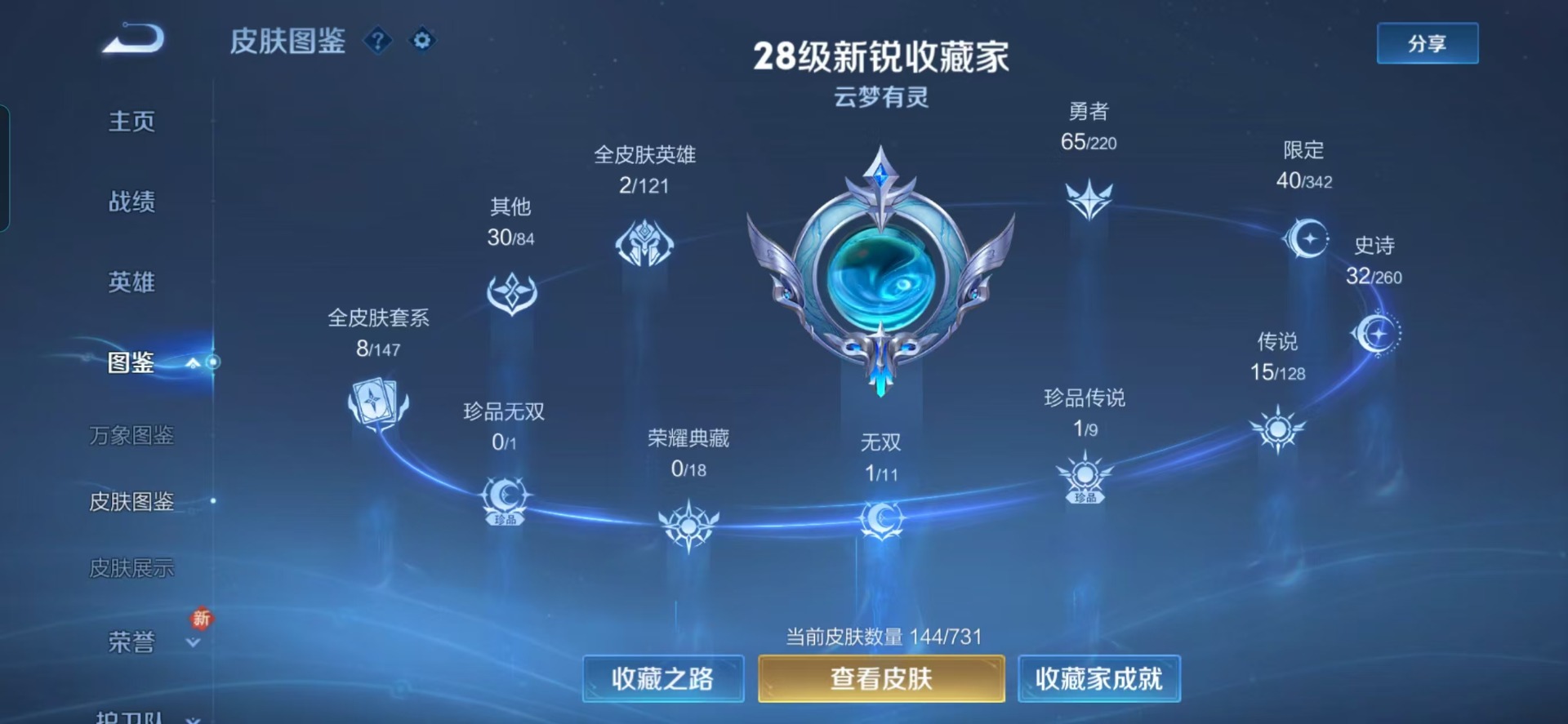 - PX_2090106-实名: 可修改 贵族等级: V5 英雄数: 95 皮肤数: 76 传说皮: 澜逐花归海 限定皮: 愿照·众生和,愿照·岁时盈,愿照·福禄聚