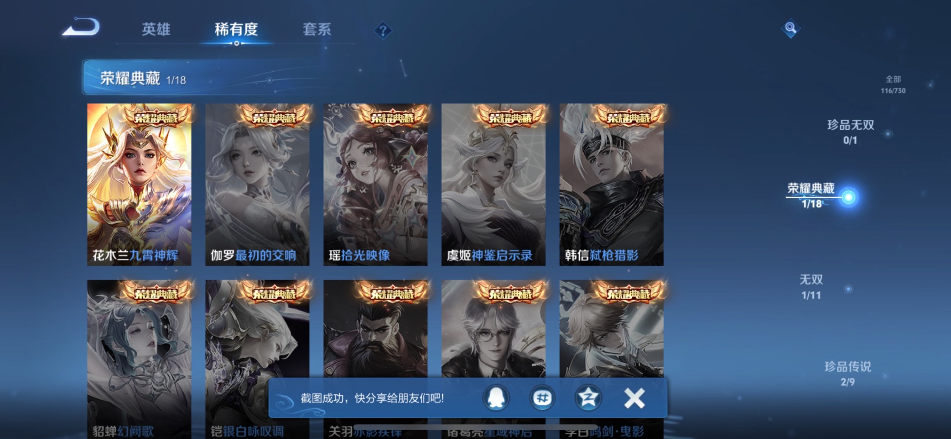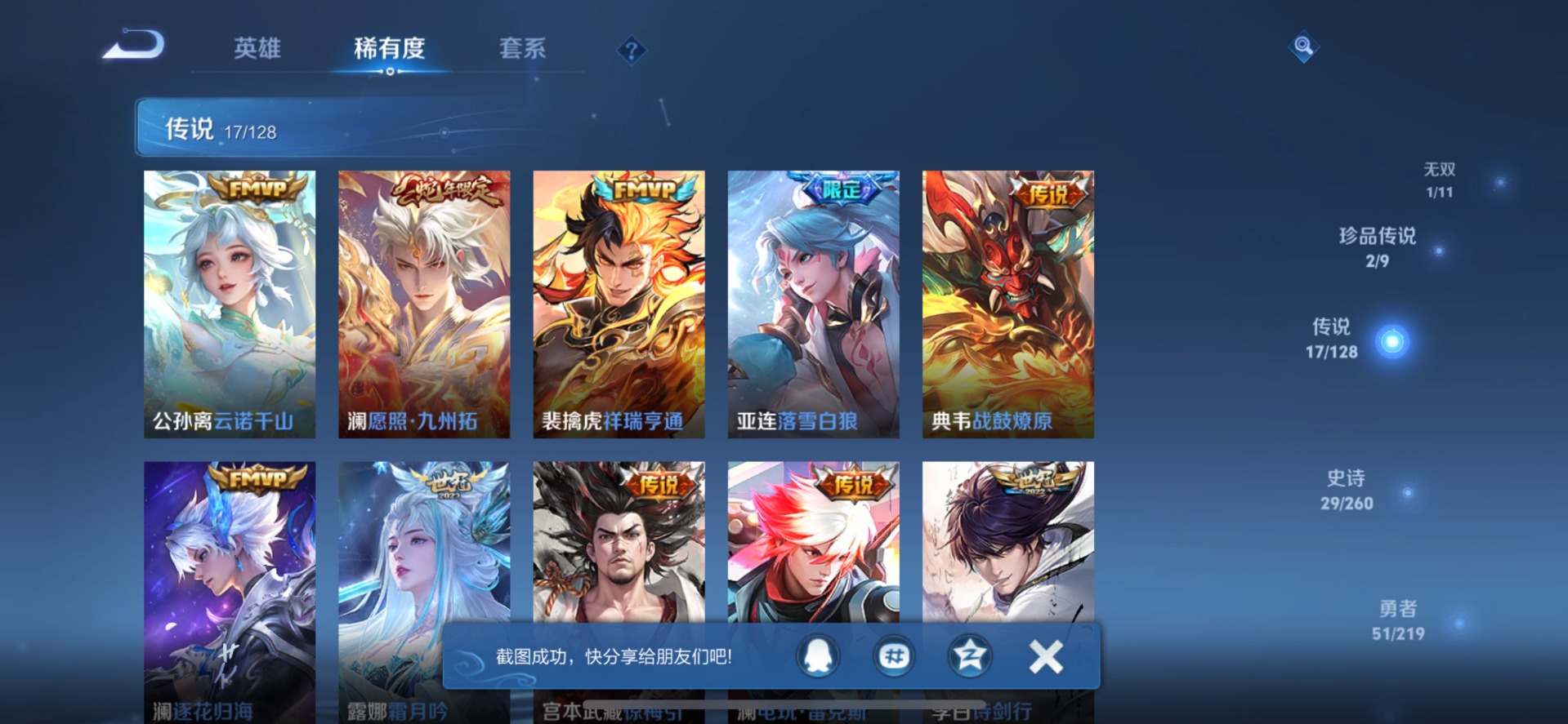 - [11849502]V6 2传说 124英雄 166皮肤 可修改实名 优质装备:炽阳神光,澜逐花归海 珍宝阁皮:玩趣恶龙 限定皮:至尊宝,飞衡(韩信年限),高山流水,五谷丰年,李小龙,如梦令-后羿,猪悟能 史诗皮:龙之律动,白龙吟,特工魅影,千年之狐,冰冠公主,乱世虎臣,节奏热浪,水果甜心,暗隐猎兽者,纤云弄巧,箭羽风息,金属风暴,原初追逐者,圣诞狂欢,鹰眼统帅,黎明之约,未来纪元-赵云