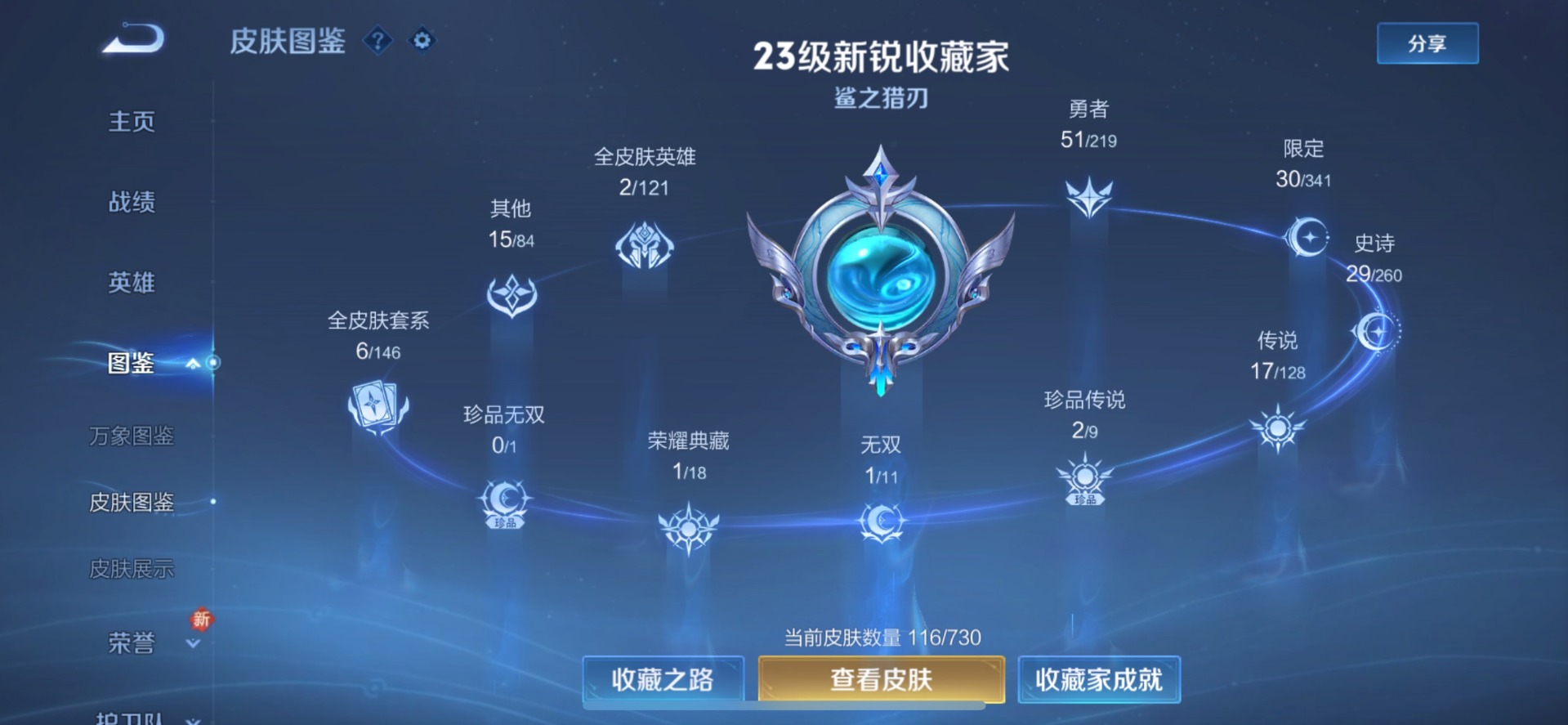 - PX_2062995-安卓V 【可二次】 英雄数量:124 皮肤数量:350 贵族等级:贵族V9 荣耀典藏3 传说品质23 史诗品质96九霄神辉 银白咏叹调 神鉴启示录 山海琳琅生 猫影幻舞 天魔缭乱 云鹰飞将 深海之息 淬星耀世 玄雷天君 山海苍雷引 山海炽霜斩 幻光神枪 愿照·众生和 齐天大圣 无限倾心男 炽翼辉光 异界灵契 神器狴犴令 怒海麟威 碎云 绛天战甲 启明星使 地狱之眼 时之恋人男