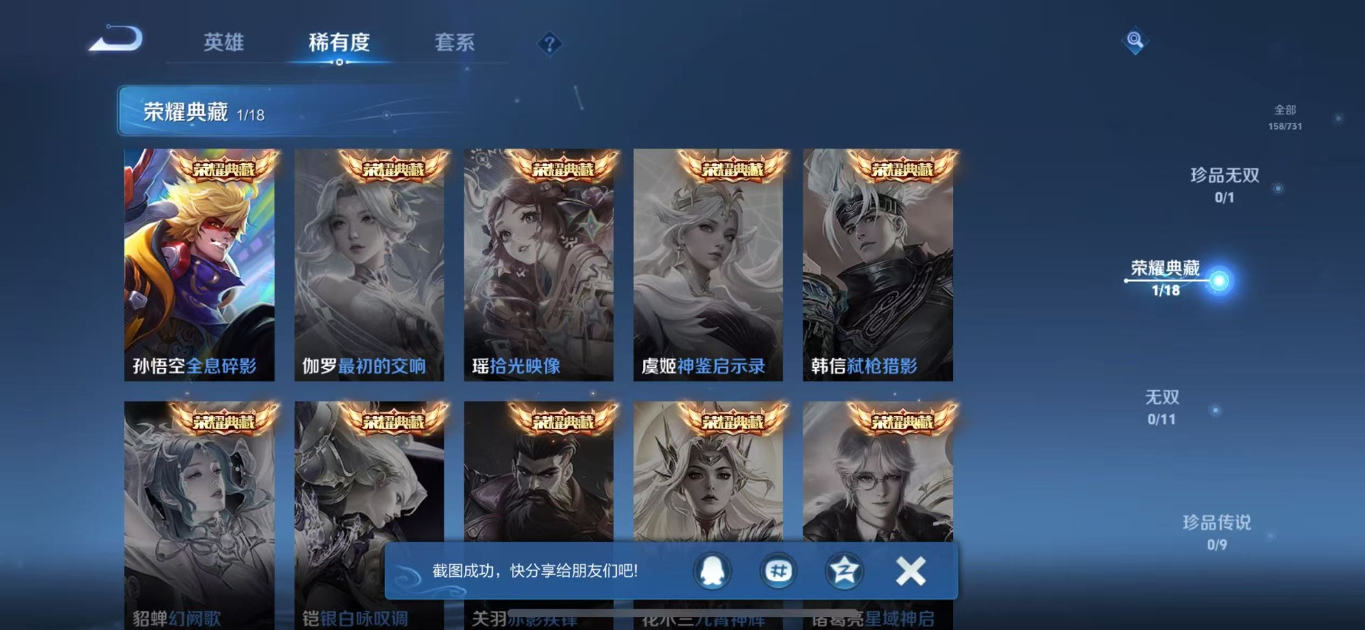 [11912568]V7 1典藏 3传说 124英雄 158皮肤 可修改实名 女号 优质装备:全息碎影(猴子典藏),云霓雀翎 限定皮:鸣野蒿,至尊宝,凤求凰(白切鸡),神威(电光马子),飞衡(韩信年限),遇见飞天,梁祝,龙胆,天狼绘梦者,如梦令-后羿 史诗皮:苍穹之光,白龙吟,黄金分割率,特工魅影,无限星赏官,冰冠公主,偶像歌手,猫狗日记-孙策,时之恋人-孙尚香,乱世虎臣,节奏热浪,修罗,水果甜心,星夜王子,德古拉伯爵,暗隐猎兽者,幽灵船长,鬼剑武藏,繁星吟游(呼啦呼啦),乘风破浪,逐浪之夏,水晶猎龙者,曙光守护者,金属风暴,圣诞狂欢,圣诞恋歌,鹰眼统帅,暗夜贵公子,魅力维加斯,未来纪元-赵云