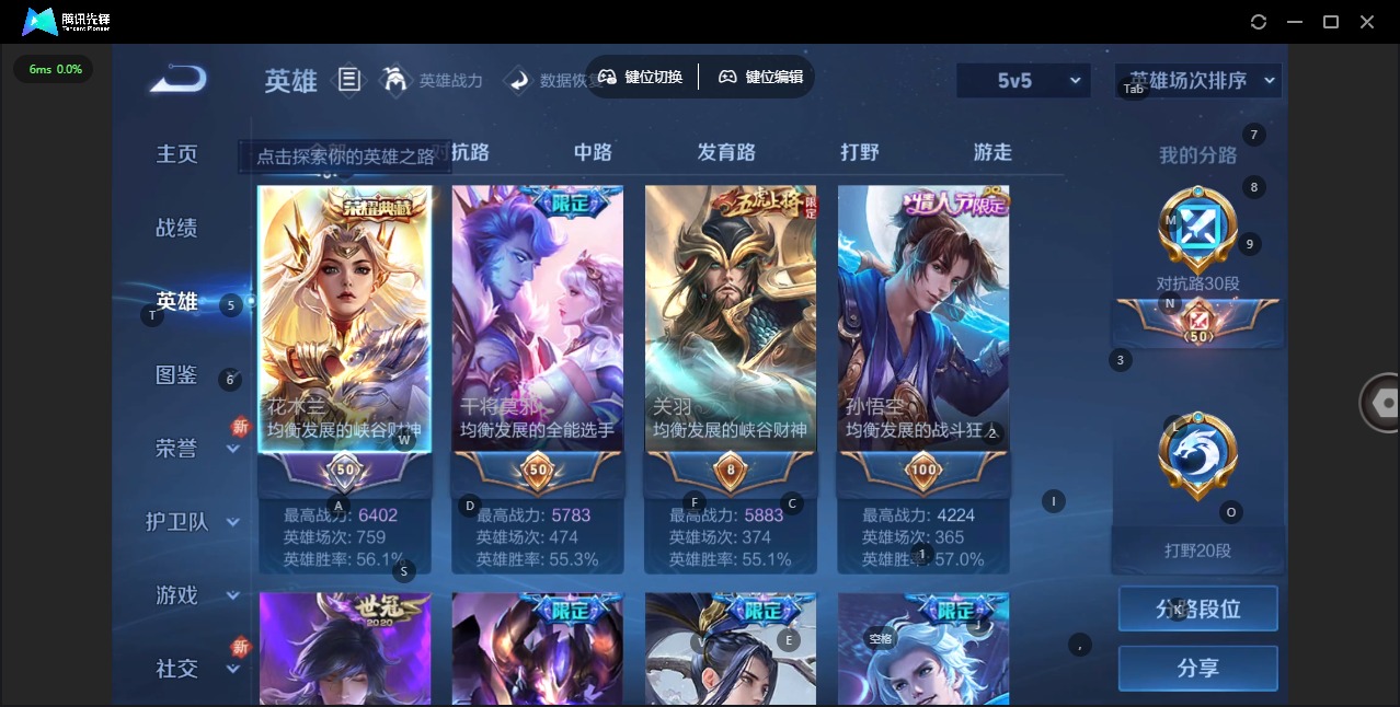 - [11685387]V6 1典藏 5传说 124英雄 157皮肤 可修改实名 优质装备:弑枪猎影(韩信典藏),炽阳神光,地狱火,无双飞将 珍宝阁皮:胡桃夹子,蔷薇恋人 限定皮:愿照·九州拓(澜年限),鸣野蒿,傲雪梅枪,玉兔公主 史诗皮:化蝶舞,龙之律动,百相守梦-周瑜,破空之剑,蒙犽顽岩魄,谪仙醉月,百相守梦-黄忠,紫霞仙子,黄金分割率,特工魅影,蒙恬荣光圣徽,魅语,末日机甲-吕布,猫狗日记-孙策,节奏热浪,水果甜心,绅士熊喵,功夫厨神,德古拉伯爵,幽灵船长,鬼剑武藏,地狱岩魂,逐浪之夏,水晶猎龙者,曙光守护者,箭羽风息,金属风暴,原初追逐者,圣诞狂欢,圣诞恋歌,鹰眼统帅,暗夜贵公子,魅力维加斯