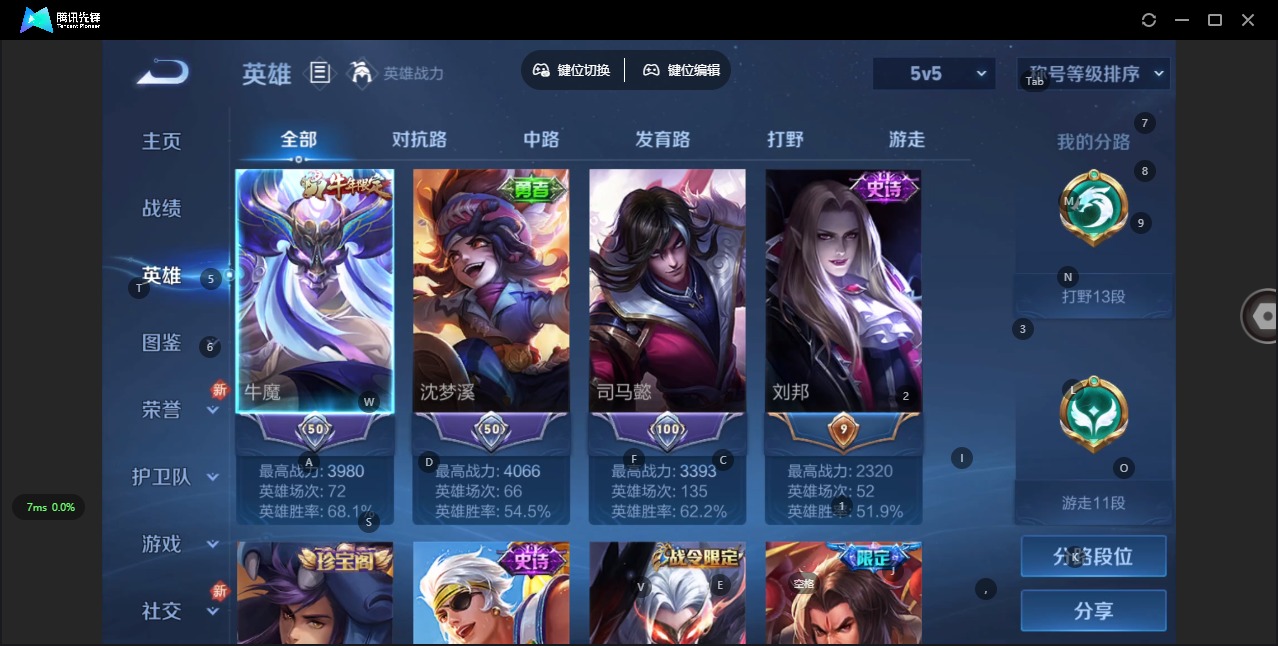 [11912689]V7 3传说 122英雄 172皮肤 可修改实名 优质装备:久胜战神,地狱火 珍宝阁皮:玩趣恶龙 限定皮:鸣野蒿,至尊宝,遇见飞天,青龙志(铠年限),梁祝,天狼狩猎者,岱宗(典韦年限),奔雷神使(牛魔年限),李小龙,霸王别姬-项羽 史诗皮:紫霞仙子,千年之狐,冰冠公主,猫狗日记-孙策,乱世虎臣,摇滚巨星,水果甜心,天才门将,星夜王子,德古拉伯爵,幽灵船长,心灵战警,纤云弄巧,繁星吟游(呼啦呼啦),缤纷独角兽,乘风破浪,水晶猎龙者,金属风暴,原初追逐者,鹰眼统帅,魅力维加斯,赏金猎手