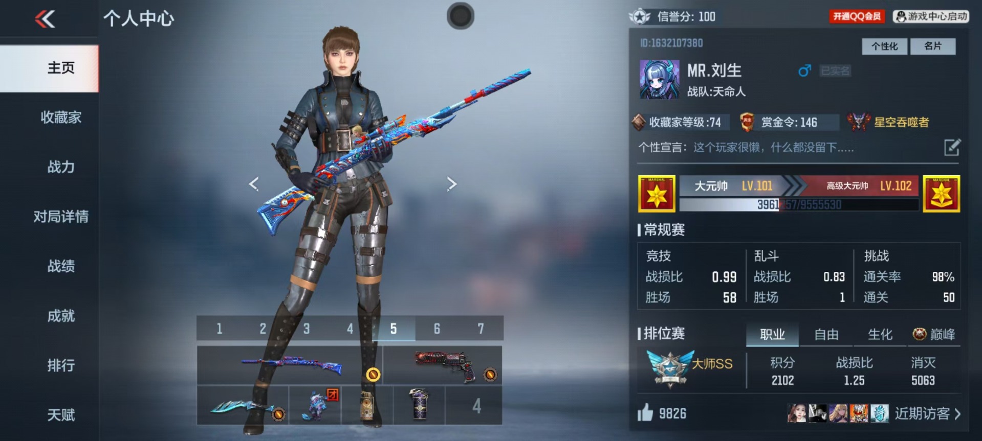 - [11526280]总资产:138.3M 1干员外观 1近战传说 18传说枪械 哈夫币:6.782K 高级安全箱(2×3)9.15号到期 可二次 可修改实名 优质装备:近战-北极星,腾龙突击步枪-气象感应(典藏) 烽火地带段位:黑鹰 全面战场段位:军士长 传说武器皮肤:AK-12突击步枪-夜鹰,M4A1突击步枪-阿米娅,CAR-15突击步枪-阿米娅,复合弓-黑-天际线,AWM狙击步枪-捞点薯条,QCQ171冲锋枪-北极星,腾龙突击步枪-捞点薯条,93R-捞点薯条,AK-12突击步枪-特斯拉线圈,SR-3M紧凑突击步枪-特斯拉线圈,UZI冲锋枪-特斯拉线圈,勇士冲锋枪-能天使-午夜邮差,725双管霰弹枪-送葬人-无题密令,K437突击步枪-北极星,M14射手步枪-工业审判,M4A1突击步枪-蚀金玫瑰 史诗武器皮肤:勇士冲锋枪-私人定制(典藏),M700狙击步枪-蝮蛇,PKM通用机枪-蝮蛇,Ash-12战斗步枪-守夜人,M16A4突击步枪-竞赛选手,PKM通用机枪-守夜人,AS Val突击步枪-尖端治疗,M700狙击步枪-守夜人,SG552突击步枪-尖端治疗,SR-25射手步枪-尖端治疗,PKM通用机枪-荒野求生,MP5冲锋枪-深海恐惧,AKM突击步枪-林中猎手,SR-3M紧凑突击步枪-荒野求生,M1014霰弹枪-林中猎手,SV-98狙击步枪-林中猎手,PTR-32突击步枪-英雄,SVD狙击步枪-荒野求生,AS Val突击步枪-典狱官,M250通用机枪-囚徒,SV-98狙击步枪-囚徒,SCAR-H战斗步枪-囚徒,腾龙突击步枪-无垢,MP7冲锋枪-无垢,PSG-1射手步枪-无垢,SVD狙击步枪-阿萨拉工艺,S12K霰弹枪-曙光 干员外观:红狼-蚀金玫瑰