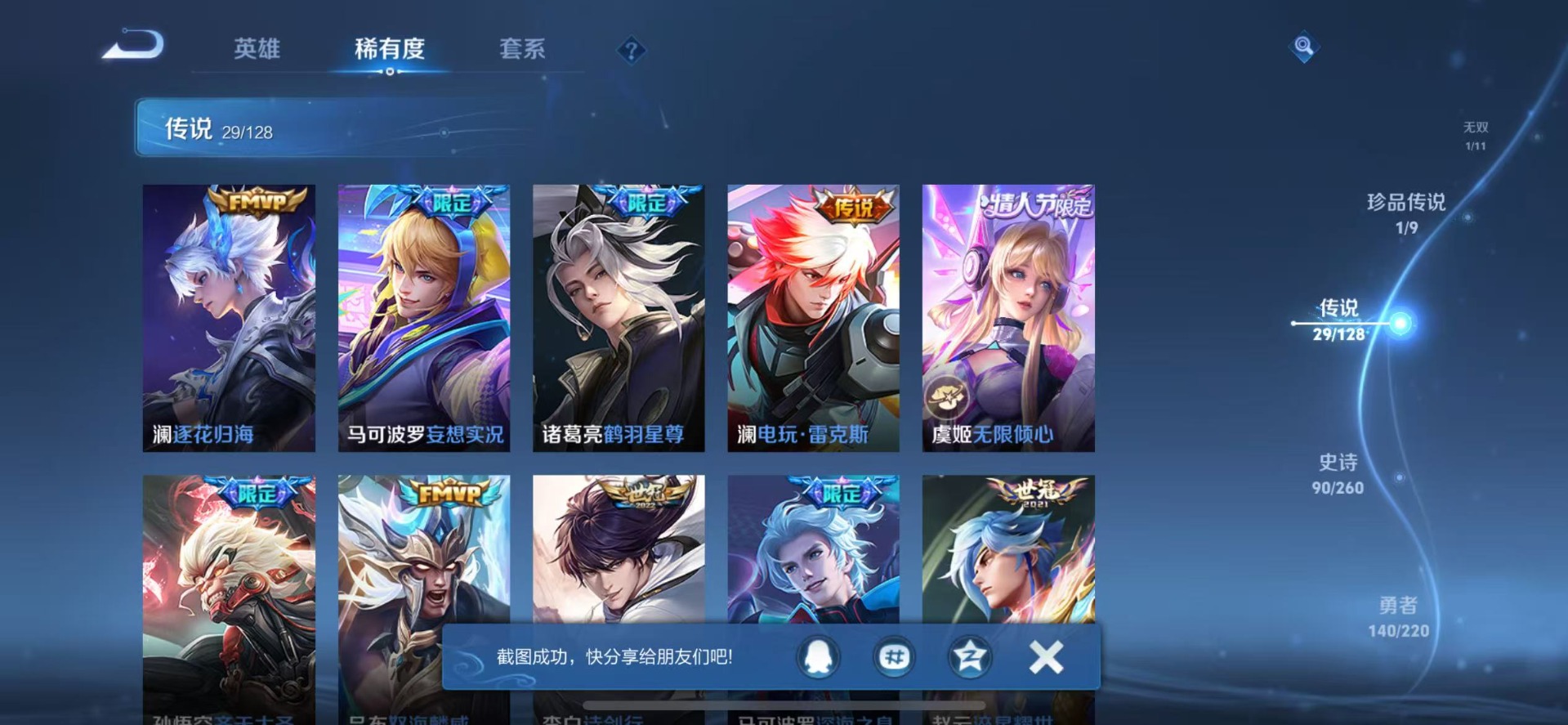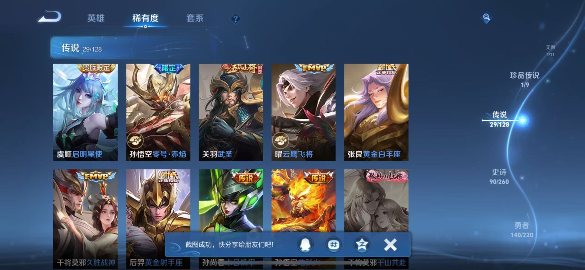 - [11460547]V7 6传说 124英雄 260皮肤 可修改实名 优质装备:久胜战神,炽阳神光,一念神魔,仲夏夜之梦(大飞蛾) 珍宝阁皮:妄想食味,优雅恋人 限定皮:至尊宝,时雨天司(水龙头),遇见飞天,高山流水,诗剑行,五谷丰年,冰锋战神,游园惊梦,梁祝,逐梦之星,李小龙,逐梦之影,玉兔公主 史诗皮:蒙犽顽岩魄,紫霞仙子,特工魅影,千年之狐,江河有灵,雪夜绮愿(周瑜),百解令(蒙犽),高渐离燃音魔法,蒙恬荣光圣徽,无限星赏官,青蛇,偶像歌手,暗夜猫娘,龙骑士(小龙虾),猫狗日记-孙策,时之恋人-孙尚香,乱世虎臣,节奏热浪,女仆咖啡,水果甜心,绅士熊喵,天才门将,星夜王子,心灵骇客,功夫厨神,德古拉伯爵,暗隐猎兽者,幽灵船长,鬼剑武藏,心灵战警,舞动绿茵,地狱岩魂,繁星吟游(呼啦呼啦),乘风破浪,逐浪之夏,水晶猎龙者,曙光守护者,金属风暴,原初追逐者,圣诞狂欢,鹰眼统帅,黎明之约,未来纪元-赵云