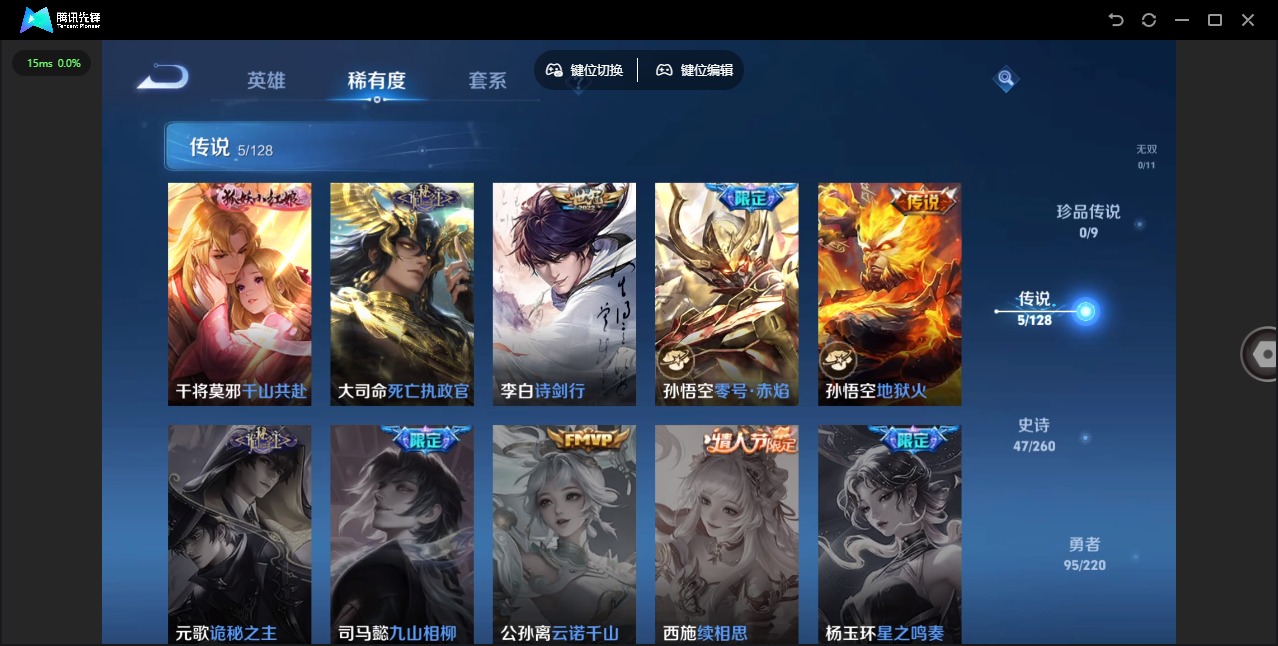 - PX_2093426-09 安卓QQ/最强王者/475皮肤/125英雄/13典藏/0珍品无双/0无双/0珍品传说/71传说/148史诗/9稀有英雄 【13 典藏皮肤】鸣剑·曳影 李白,全息碎影 孙悟空,杀手不太冷 孙尚香,天鹅之梦 小乔,活力突击 程咬金,倪克斯神谕 武则天,银白咏叹调 铠,星空梦想 鲁班七号,无限飓风号 夏侯惇,九霄神辉 花木兰,大秦宣太后 芈月,赤影疾锋 关羽,星域神启 诸葛亮
