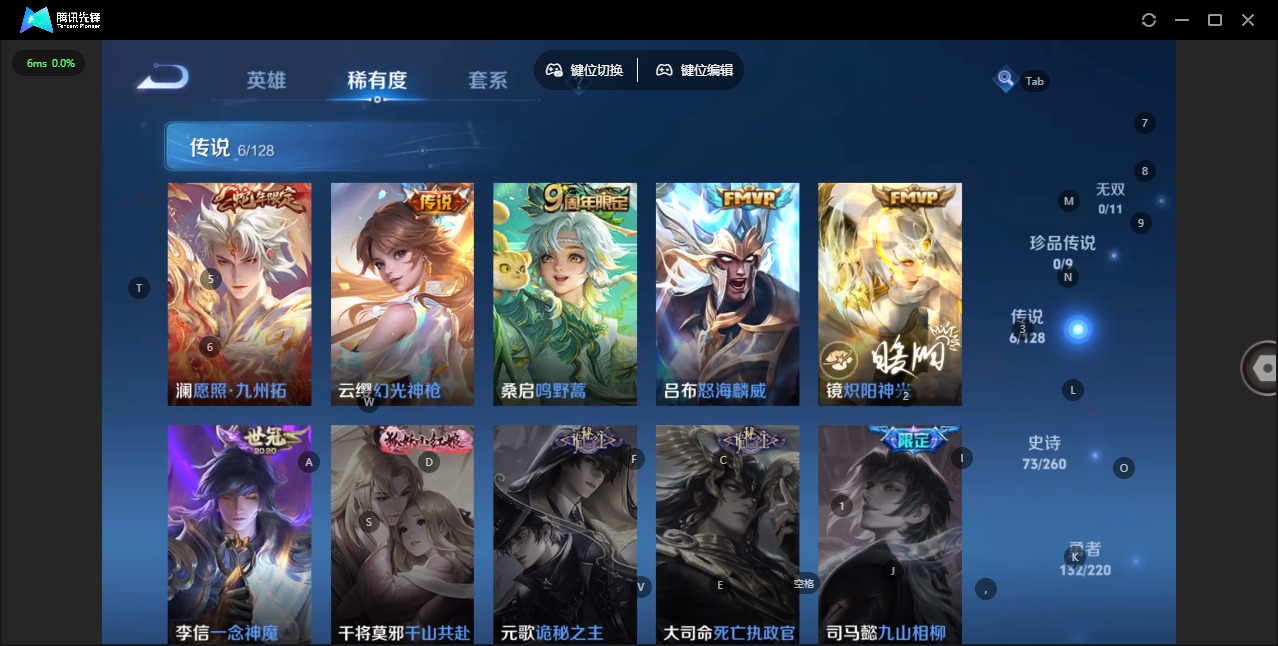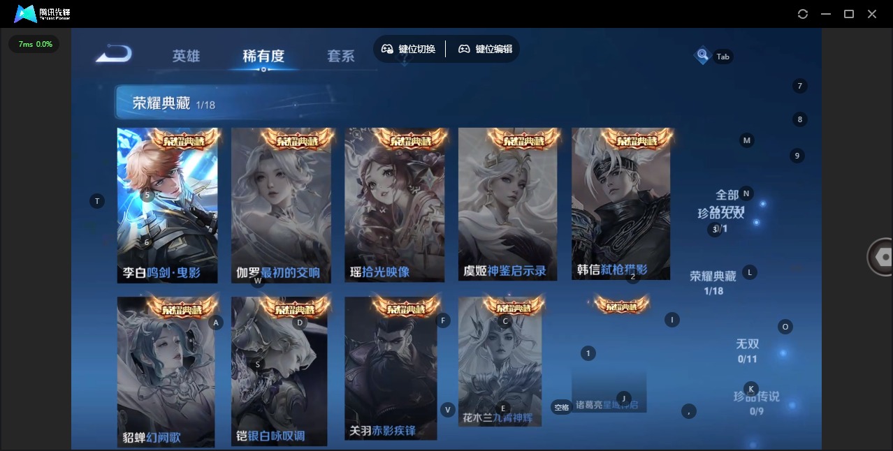 [11914400]V7 1典藏 6传说 125英雄 267皮肤 可修改实名 女号 优质装备:鸣剑·曳影,炽阳神光,一念神魔 传说皮:幻光神枪 珍宝阁皮:妄想食味,胡桃夹子 限定皮:愿照·九州拓(澜年限),鸣野蒿,高山流水,怒海麟威,五谷丰年,梁祝,猪悟能 史诗皮:鸭鸭历险记-刘禅,器灵·浮梦炉,星界战将,龙之律动,石田雨龙,怒海争锋,破空之剑,战舞者,上官婉儿群星魔术团,蔬乡物语(鲁班七号),百相守梦-百里守约,百相守梦-黄忠,织梦人,紫霞仙子,黄金分割率,江河有灵,百解令(蒙犽),高渐离燃音魔法,蒙恬荣光圣徽,偶像歌手,电玩·爆裂旋风,末日机甲-吕布,猫狗日记-孙策,猫狗日记-大乔,节奏热浪,修罗,女仆咖啡,摇滚巨星,水果甜心,绅士熊喵,天才门将,星夜王子,功夫厨神,德古拉伯爵,暗隐猎兽者,幽灵船长,鬼剑武藏,暗渊魔法,乐园奇幻夜,天秀·启明,地狱岩魂,纤云弄巧,拒霜思,缤纷独角兽,乘风破浪,逐浪之夏,水晶猎龙者,曙光守护者,金属风暴,原初追逐者,圣诞狂欢,鹰眼统帅,黎明之约,无心,未来纪元-赵云