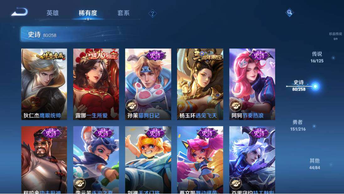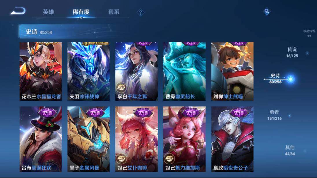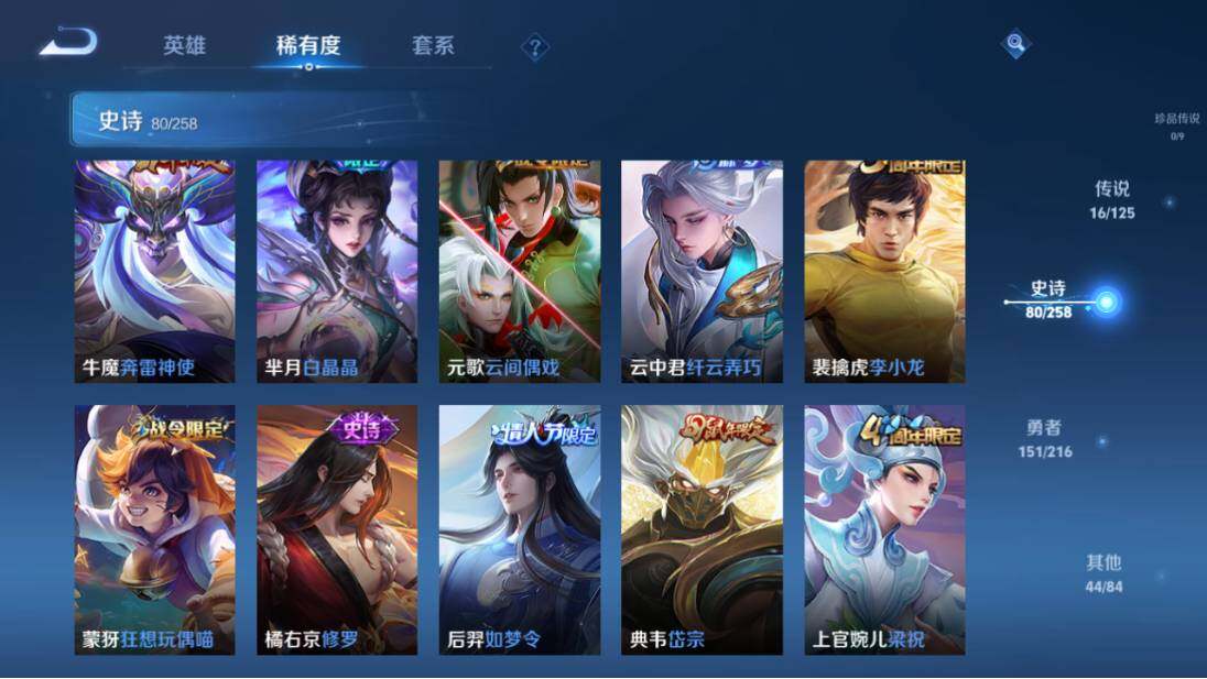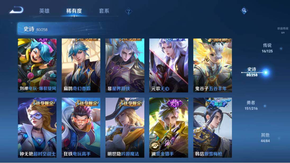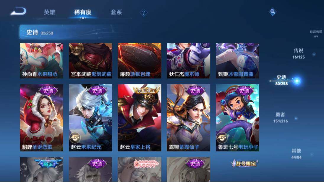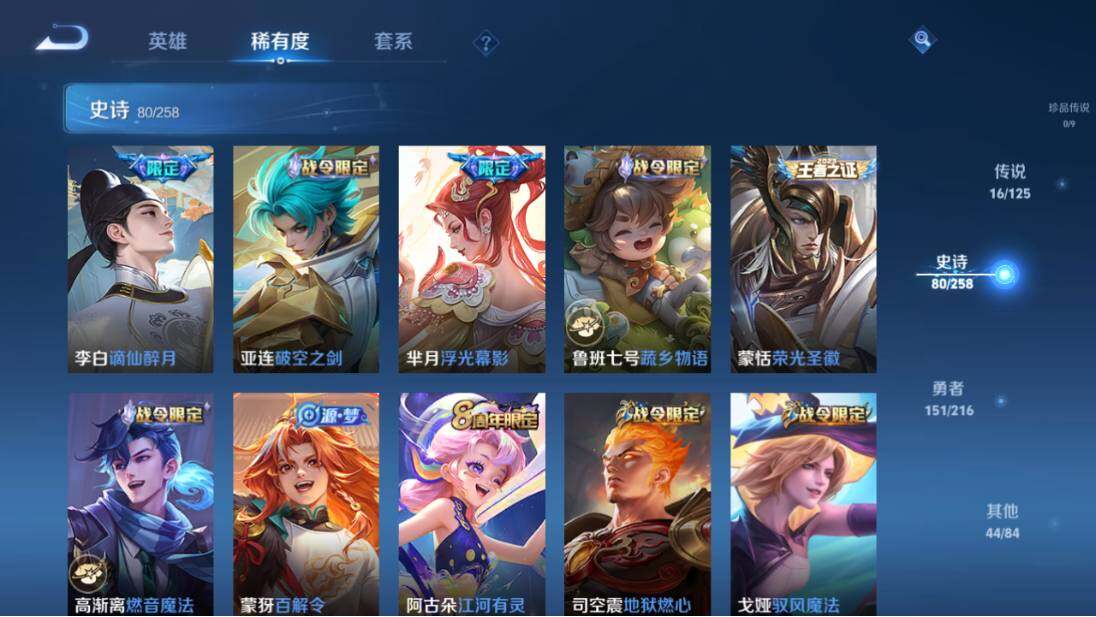 [11923854]【商品标题】:安卓Q-V7-至尊星耀V段位-124英雄-292皮肤-1典藏-0珍品无双-0无双-0珍品传说-16传说-79史诗
