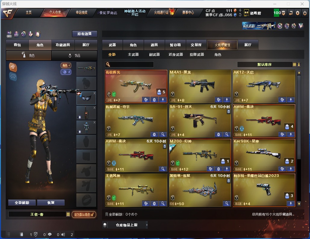 [11926631]12V武器 可二次 可修改实名 优质装备:M200-幻神,传说辉光,Kar98k-星神,柯尔特-荣耀世冠白鲨2023,M4A1-黑龙,AWM-裁决,AK12-天启,屠龙 排位资格:有 王者武器:王者风神-觉醒版 热门武器:COP-白鲨1