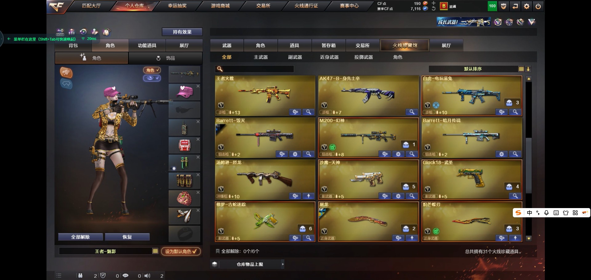 [11926944]1王者武器 26V武器 可二次 可修改实名 优质装备:M200-幻神,QBZ03-金色蔷薇,白虎-电玩蓝兔,AK47-火麒麟,AK47-黑武士,M4A1-雷神,M4A1-黑骑士,M4A1-武圣,Barrett-毁灭,汤姆逊-烈龙,沙鹰-天神,屠龙,Barrett-暗月传说,炽芒蝶刃,AK47-黑武士-锦绣游龙,Glock18-武圣,金色蔷薇-古蛇迷踪,修罗-古蛇迷踪 排位资格:有 V武器:AK47-B-身先士卒,AK-47-猩红传说1