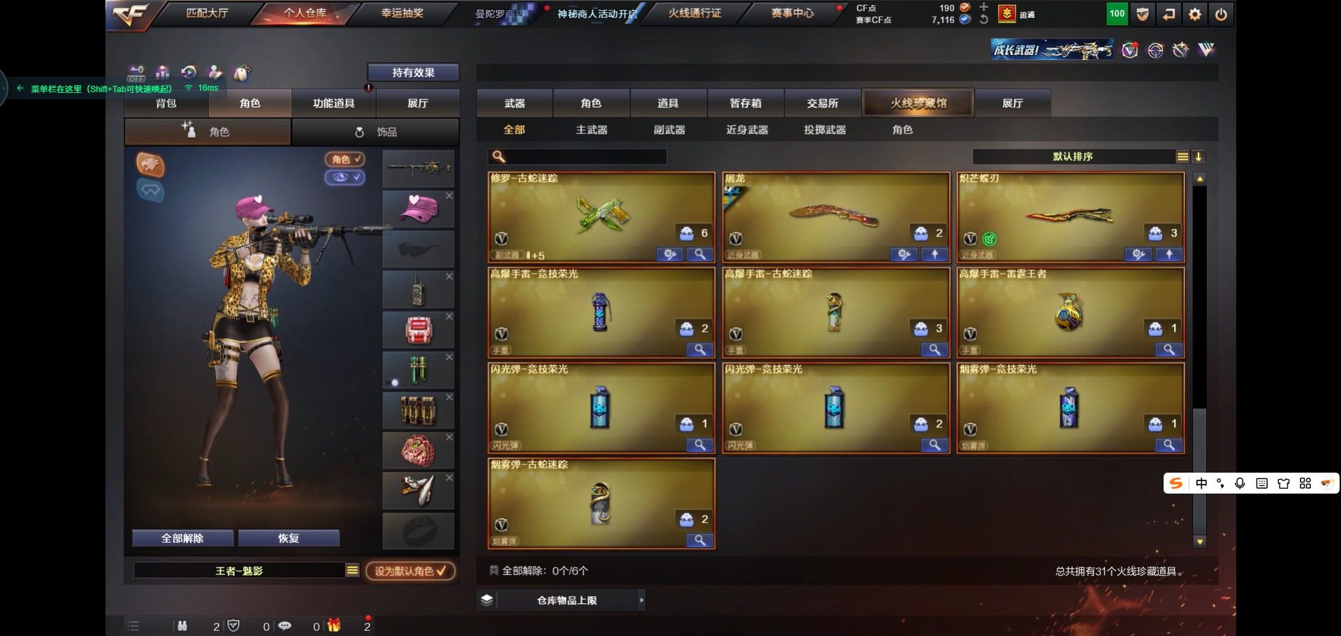 - PX_2090948- 苹果微信-18王牌印记-有战神框-7粉装-10特效枪-0载具-94481热力值-219套装-301枪皮-2卓越印记-1传奇印记 【7粉装】,放客神游,智耀战神,暗夜玫瑰,智能音符,宙之时溯,未来歌姬,烟云彩露 【10特效枪】AKM-绿萝繁花-5级 AKM-梦之光华-7级 SCAR-L-锦绣绵绵-5级 M416-五爪金龙-7级 GROZA-镜光银凌-5级 AUG-暖羊咩咩-5